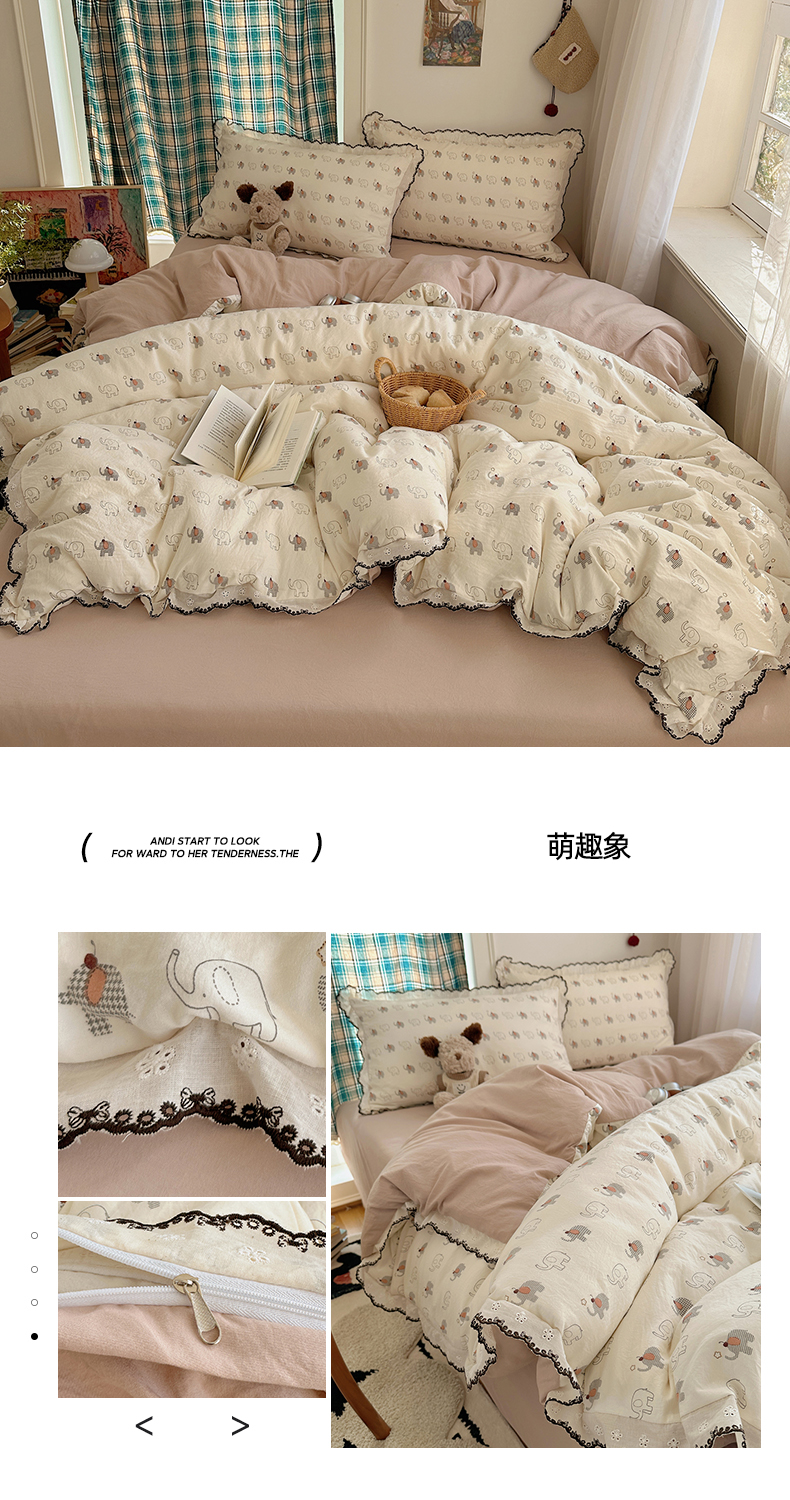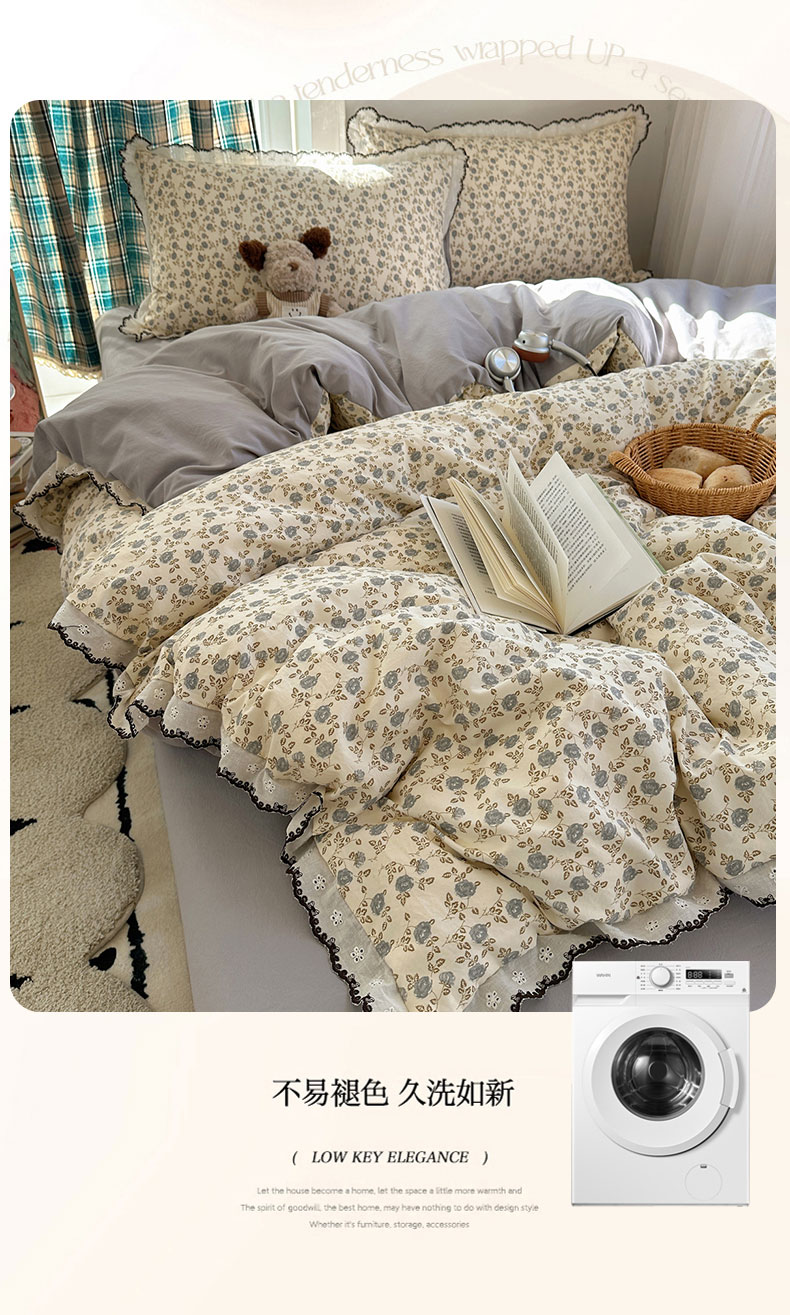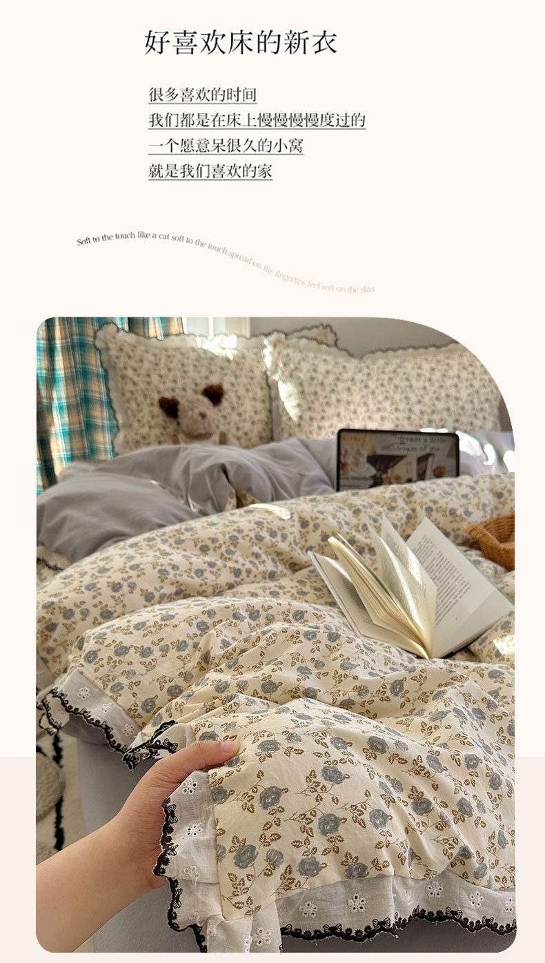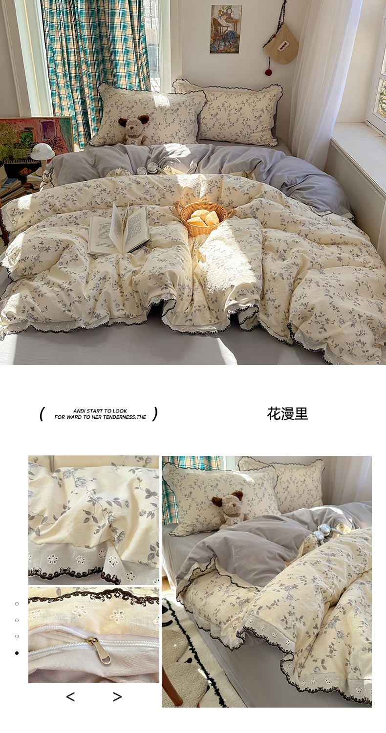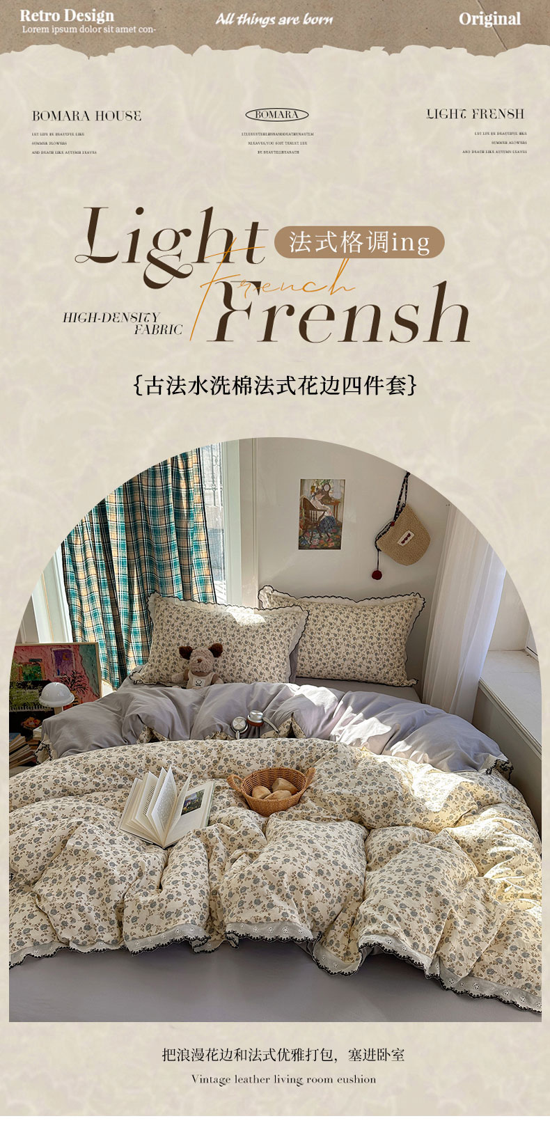 当前位置: 91家纺网 > 商品网购 > 床品套件 > 四件套 > 水洗棉四件套 > 凯洛奇 2026新款仿棉古法水洗棉复古法式花边四件套 花春晓