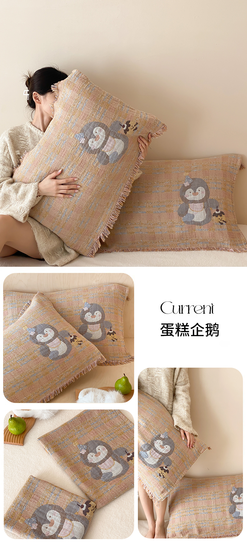 (总)麻依 2025新款全棉四层纱布软萌流苏枕巾,波点企鹅,蛋糕企鹅,蛋糕小咪,调皮小猫,乖乖狗,锣鼓小熊,帽子小象,沙发小狗,鲨鱼小狗,玩偶熊KT,线团小咪,香蕉小猫,鸭鸭小猫,杂技小狗,组合图