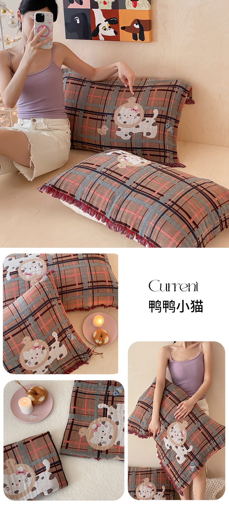 (总)麻依 2025新款安心棉枕巾四层全棉纱布枕头皮,布朗兔,彩虹点点,点点蝴蝶结-粉,点点蝴蝶结-米白,搞怪猫,韩系小樱桃,焦糖草莓,兰溪,漫语,木栖,天猫精灵,小波点,组合图