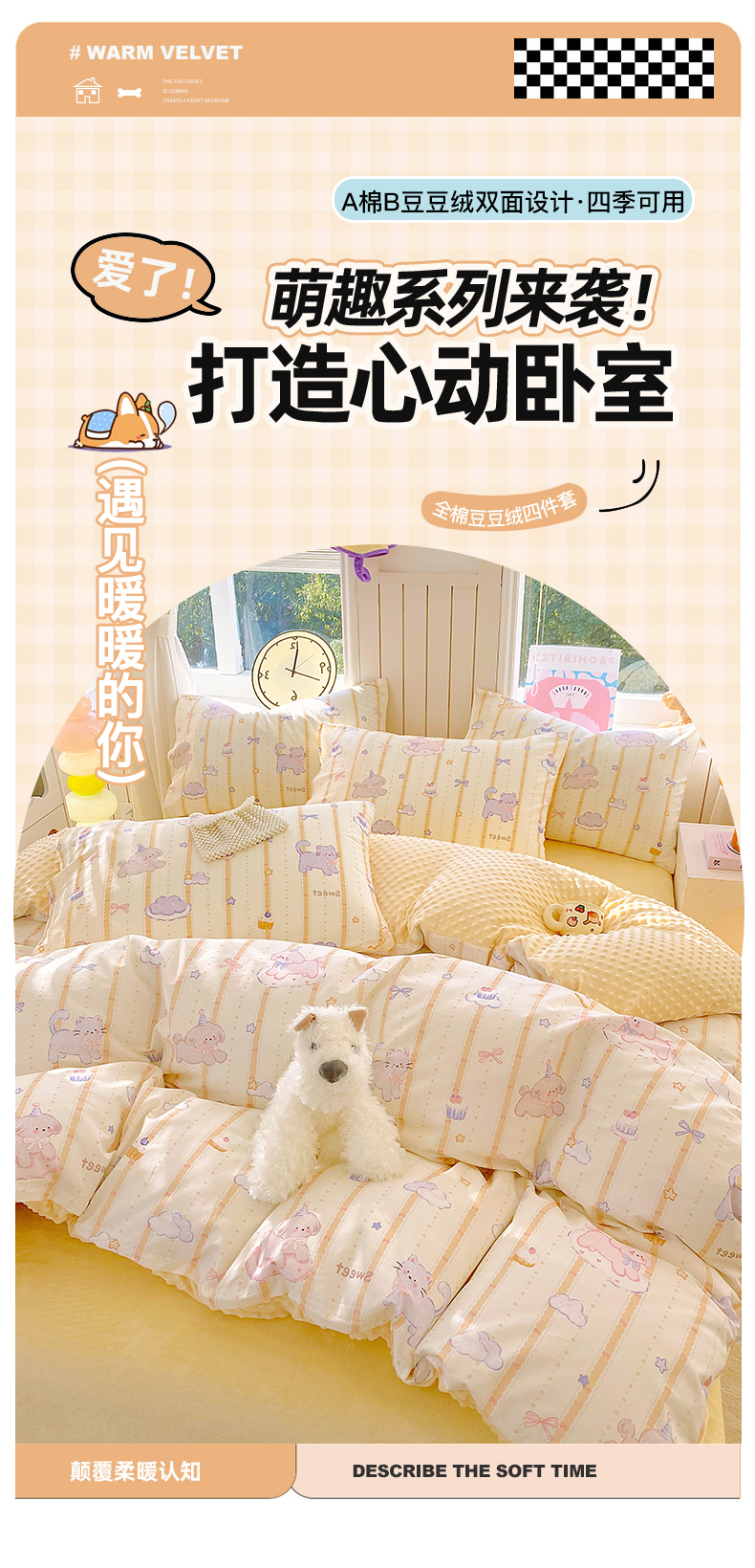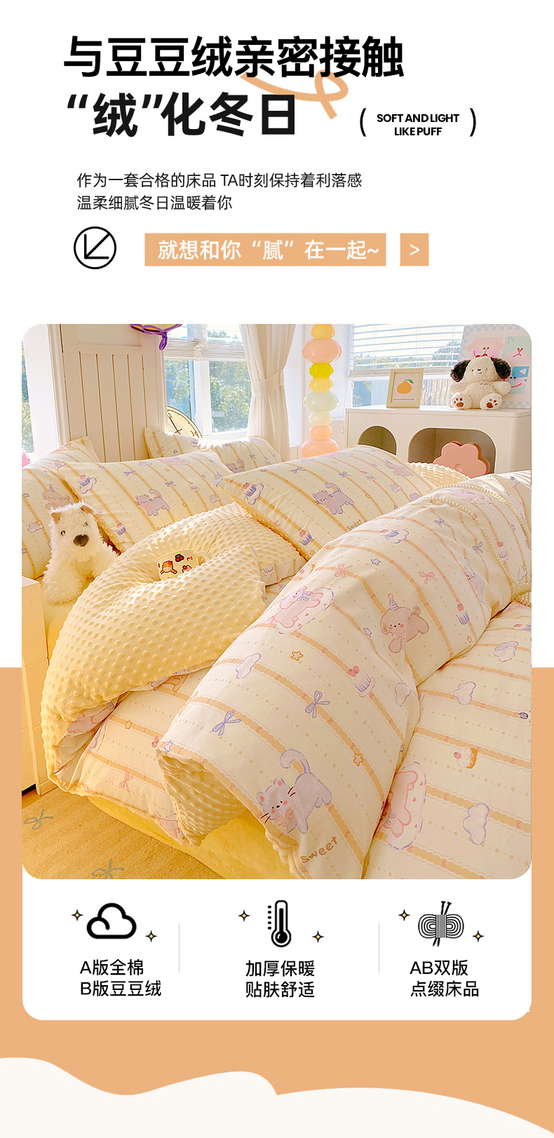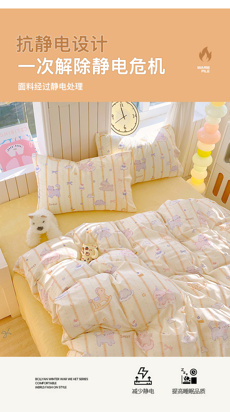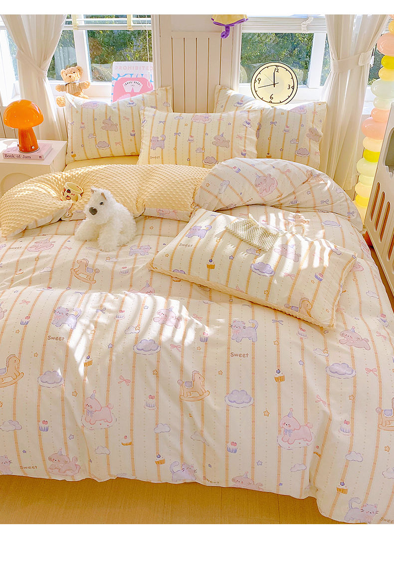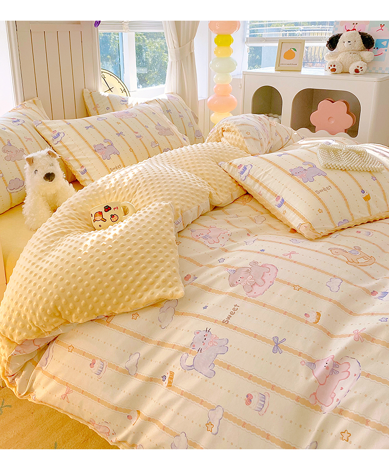 当前位置: 91家纺网 > 商品网购 > 床品套件 > 四件套 > 全棉普通四件套 > 金鑫汇家纺 2025新款全棉纯棉棉加豆豆绒棉加绒系列四件套 棉加豆豆绒-甜梦园-黄