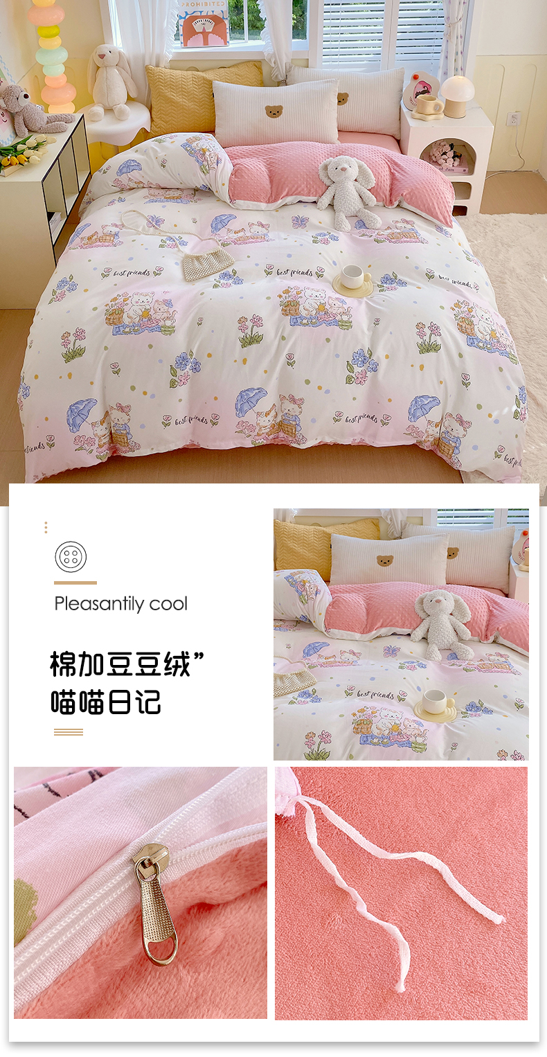 商品名称:金鑫汇家纺 2025新款全棉豆豆绒系列单被套-棉加绒系列 棉加绒-收获满满