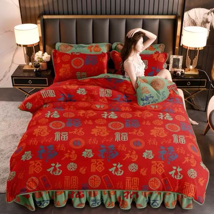 沐妍家纺 2025新款8斤加厚保暖金貂绒牛奶绒印花四件套 百福汇,百福汇
