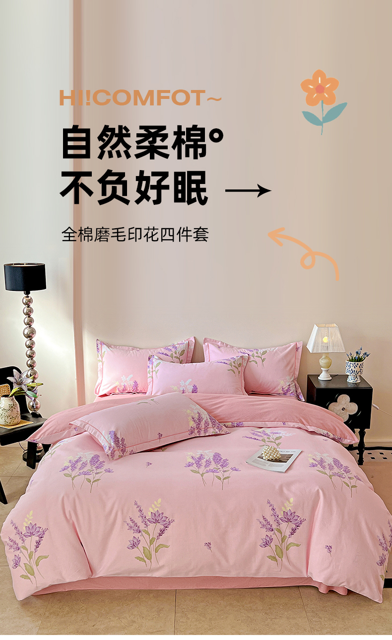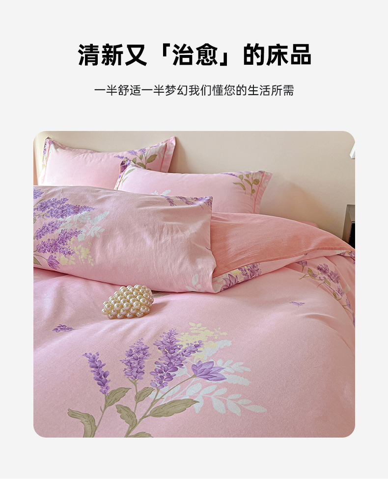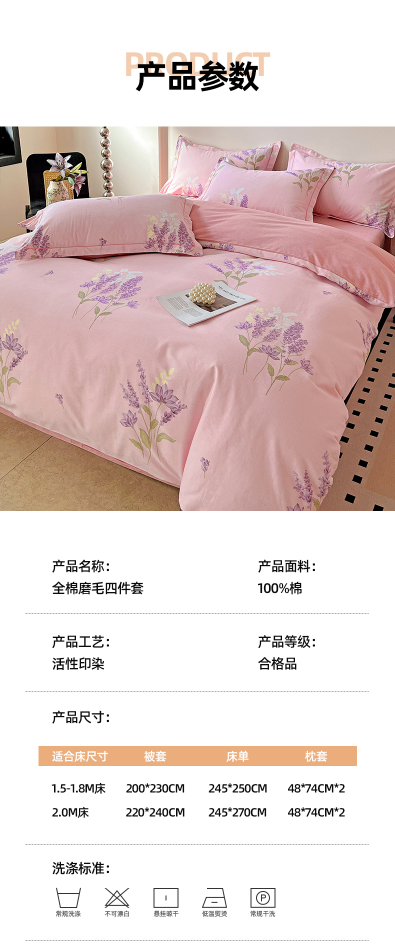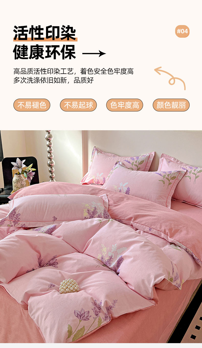 亿梵家居 2026新款全棉纯棉磨毛四件套 风中摇曳-粉