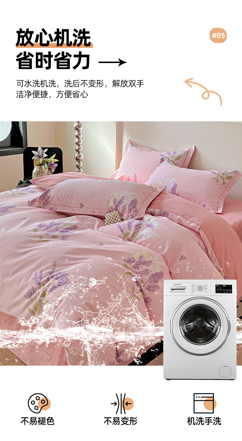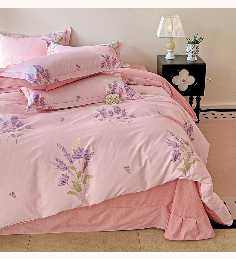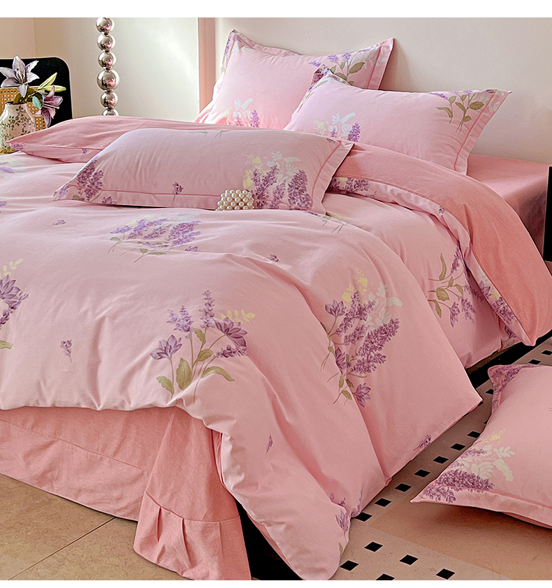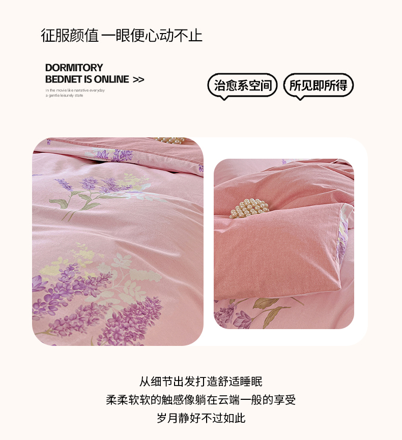 亿梵家居 2026新款全棉纯棉磨毛四件套 风中摇曳-粉