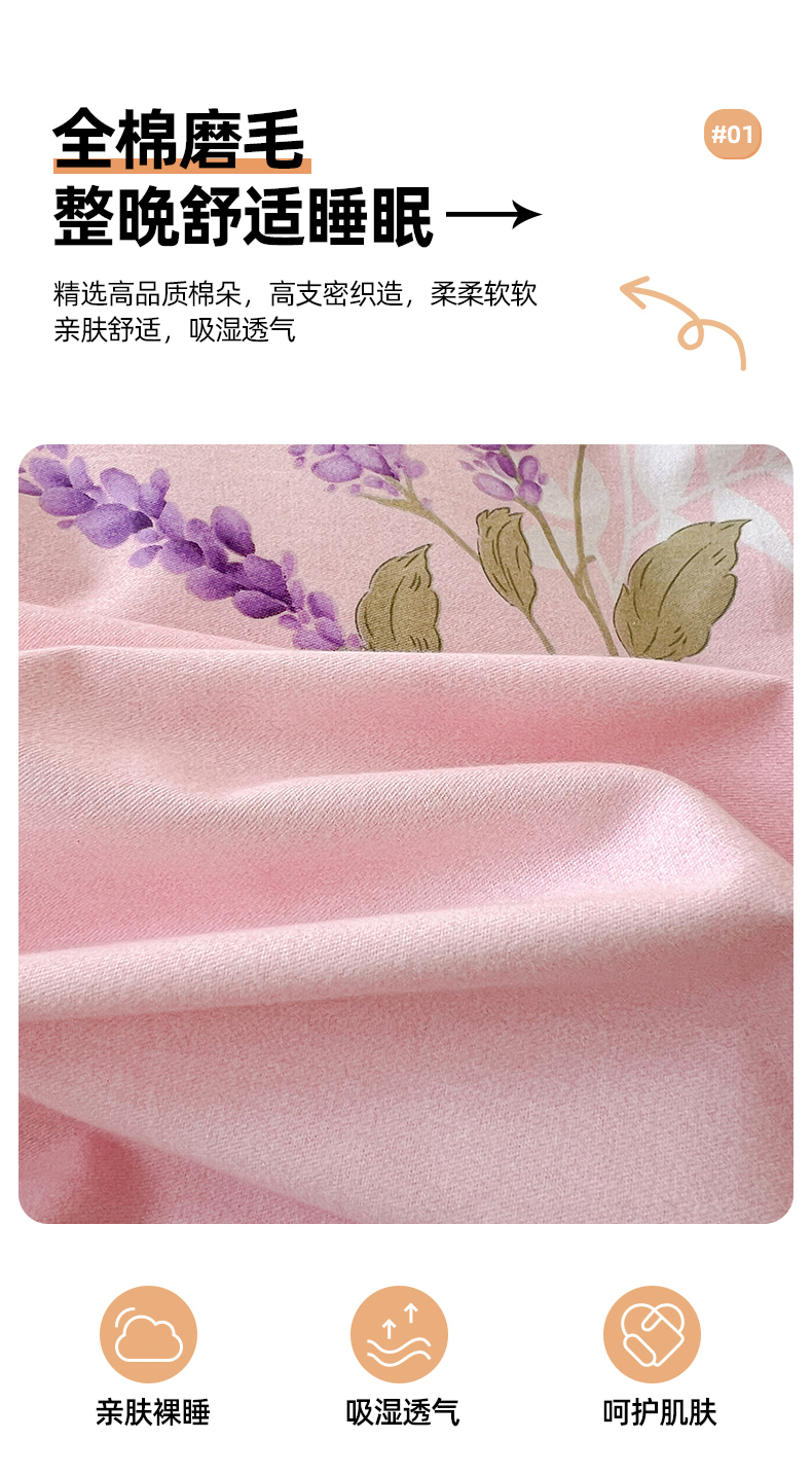 商品名称:亿梵家居 2026新款全棉纯棉磨毛四件套 风中摇曳-粉