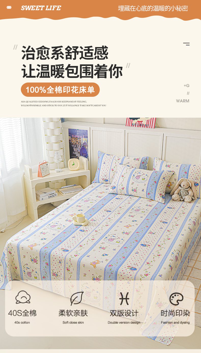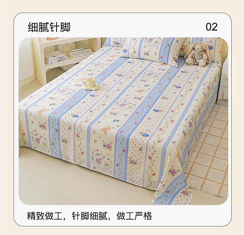 金鑫汇家纺 2026新款13070全棉单品套件系列-成人床A版单床单 快乐萌兔