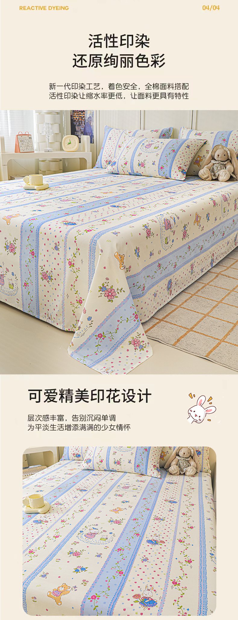 • 91家纺网 家纺一手货源 找家纺 金鑫汇家纺 2026新款13070全棉单品套件系列-成人床A版单床单 快乐萌兔