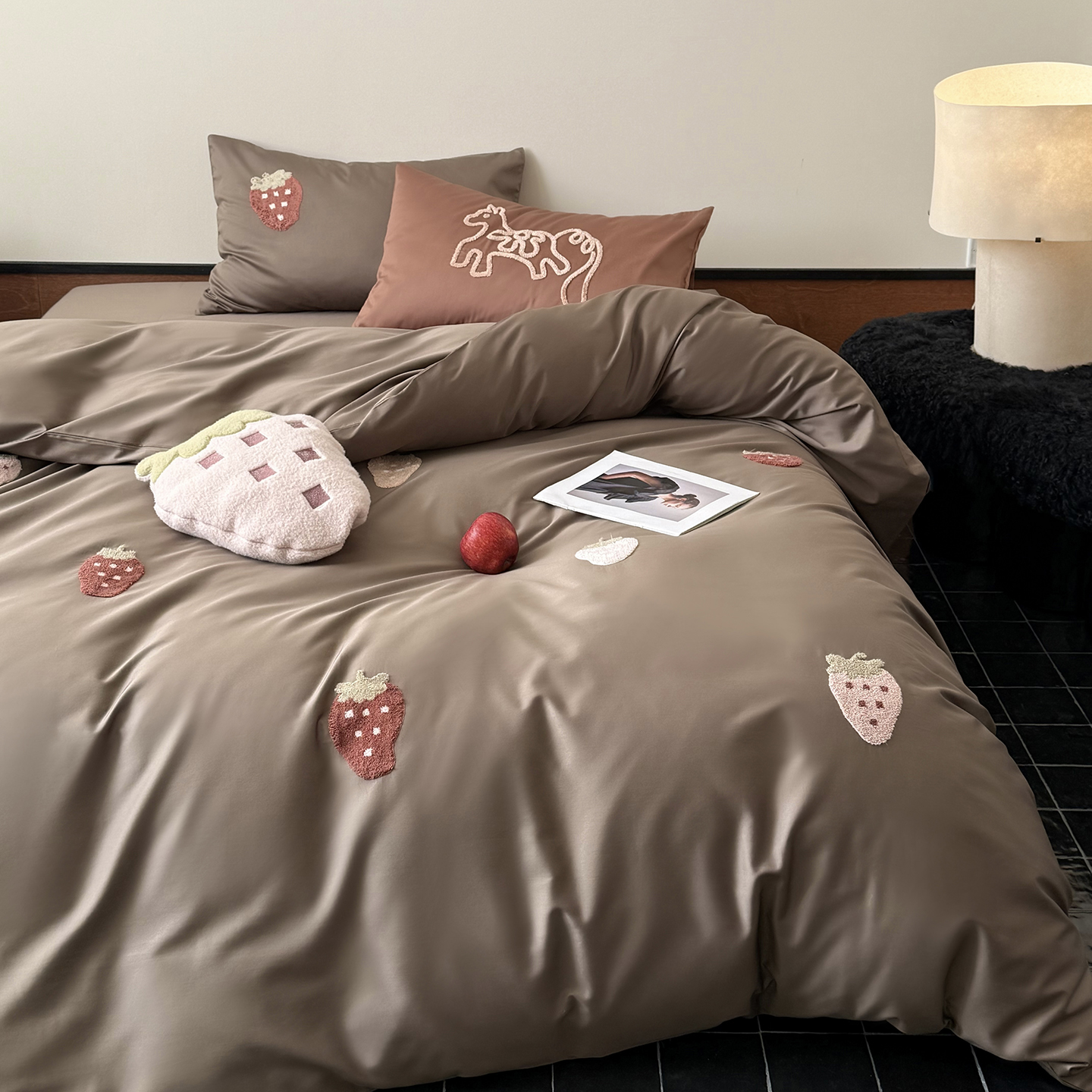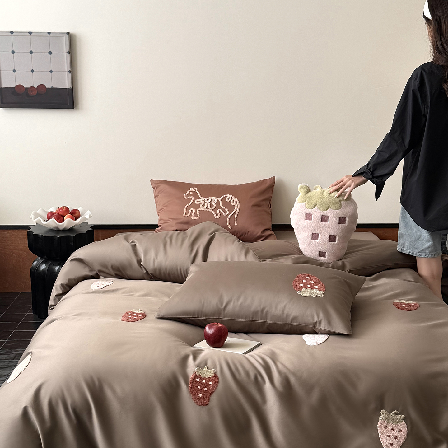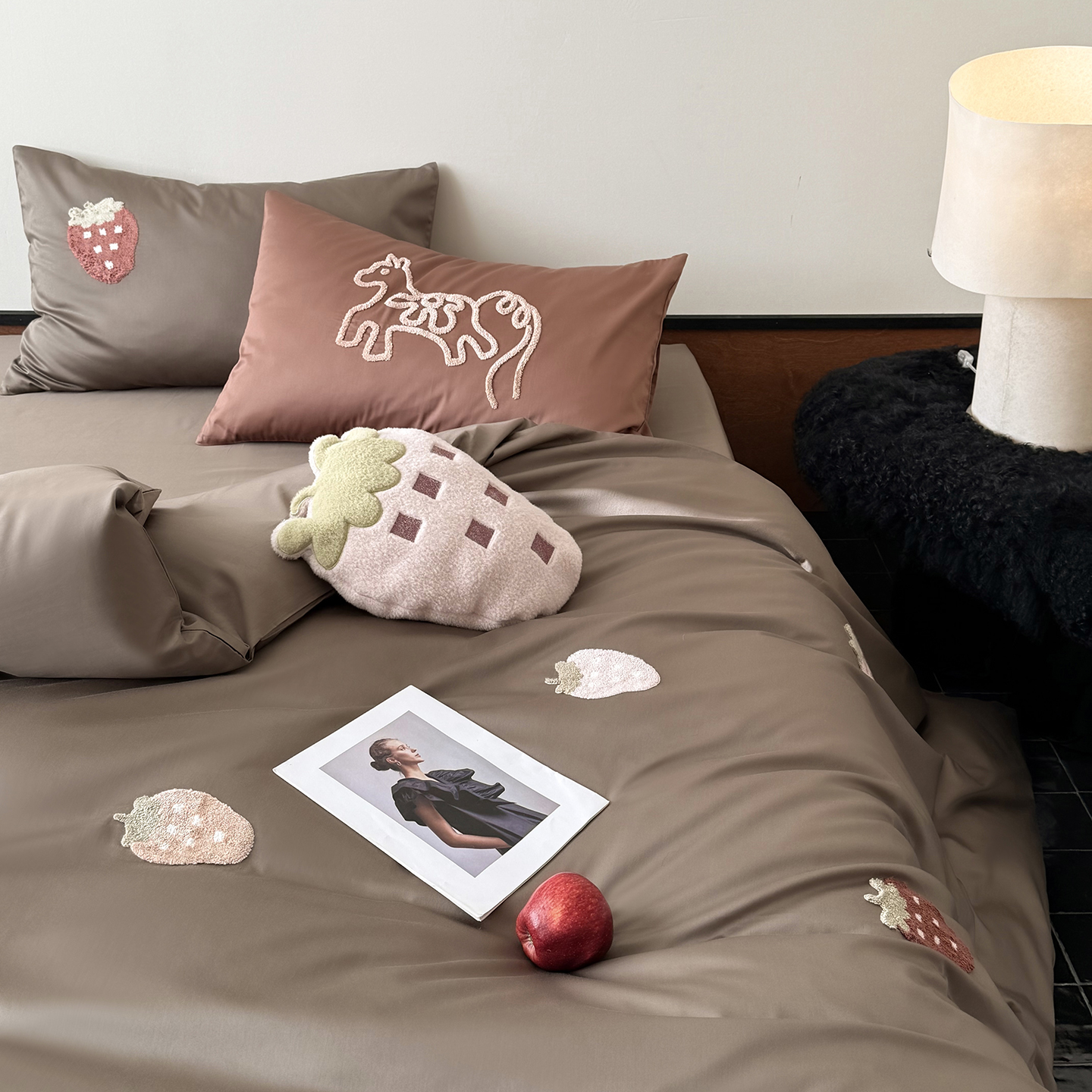 当前位置: 91家纺网 > 商品网购 > 床品套件 > 四件套 > 长绒棉四件套 > 鹿班家居 2026春季新品100S长绒棉毛巾绣系列四件套-草莓方方 标准会员-20元 草莓方方-巧克力