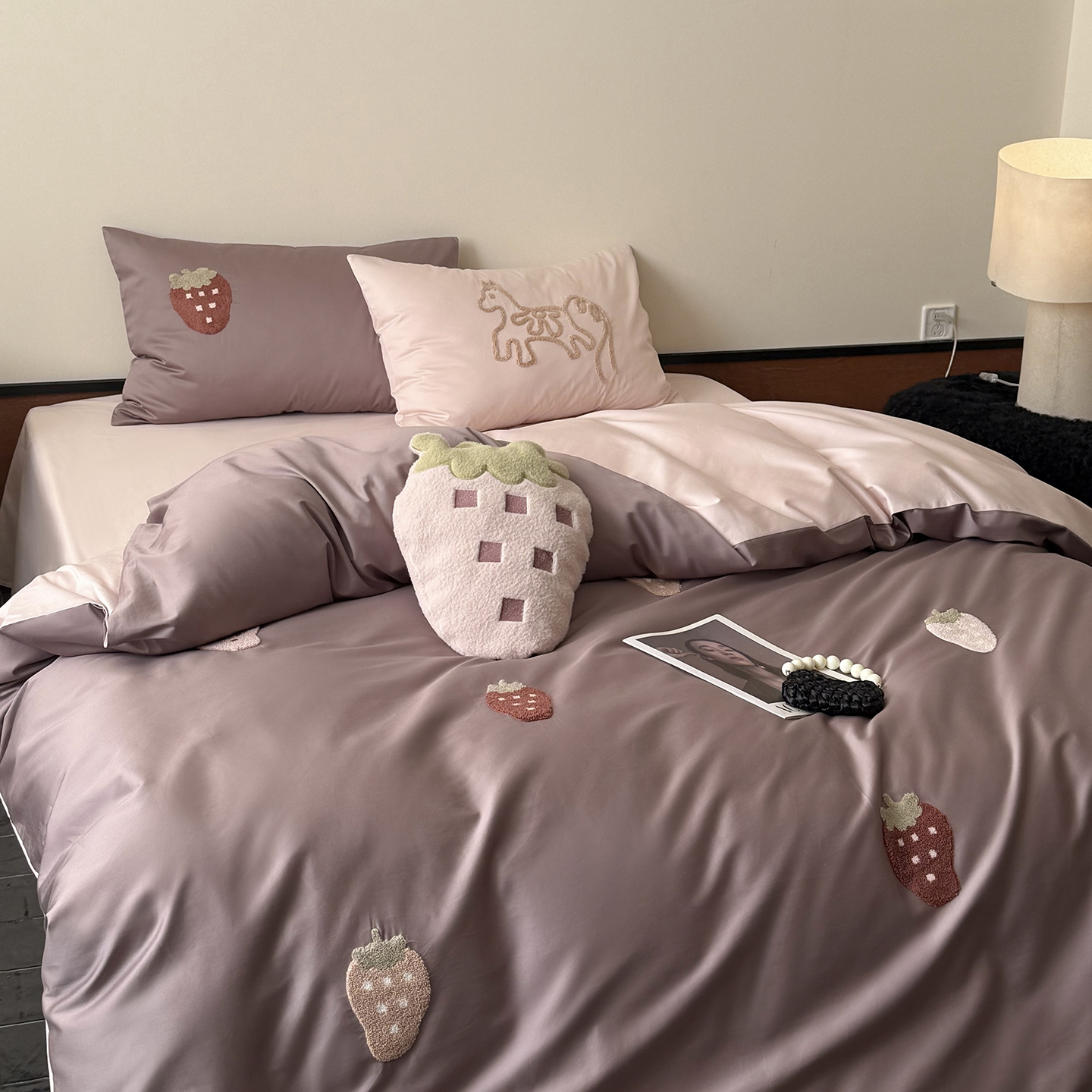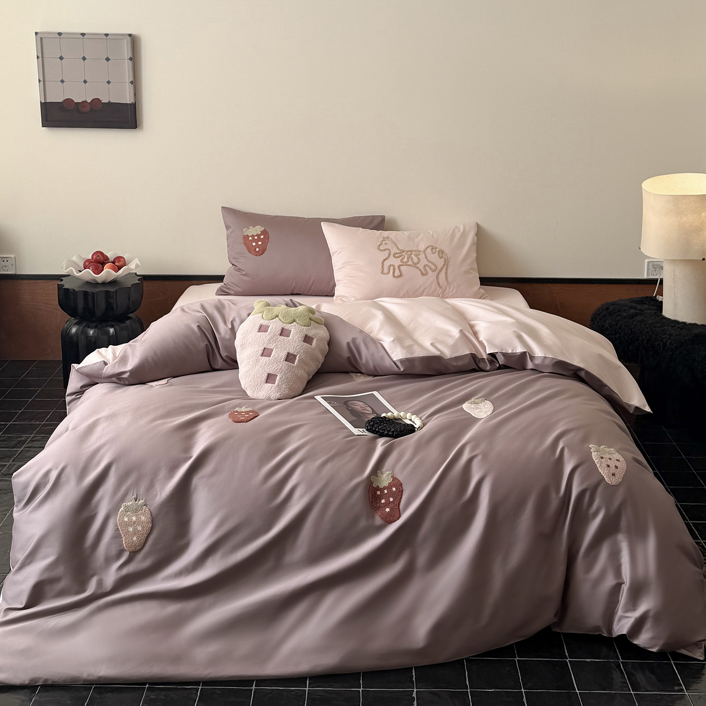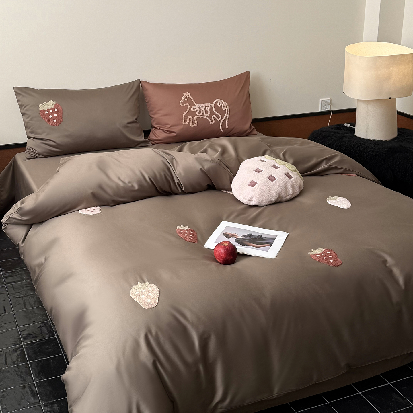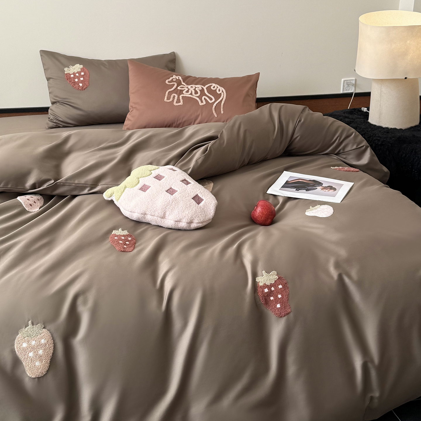 当前位置: 91家纺网 > 商品网购 > 床品套件 > 四件套 > 长绒棉四件套 > 鹿班家居 2026春季新品100S长绒棉毛巾绣系列四件套-草莓方方 标准会员-20元 草莓方方-巧克力