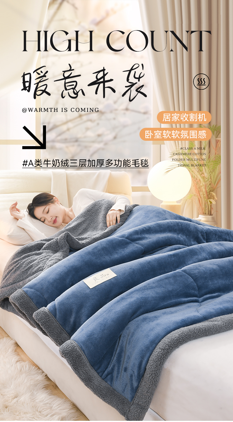 (总)恋绒家纺 2025新款三层牛奶绒夹棉毛毯复合盖毯直播外贸毯子,宝石蓝,粉玉色,咖啡色,抹茶绿,深灰色,杏仁色,湛蓝色
