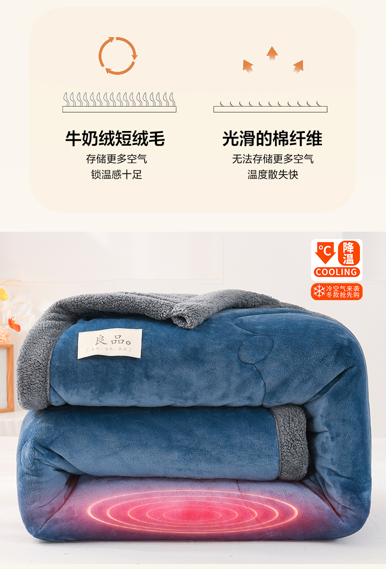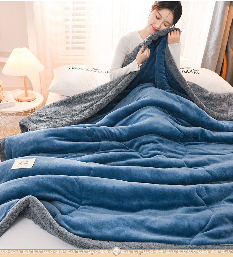 商品名称:恋绒家纺 2025新款三层牛奶绒夹棉毛毯复合盖毯直播外贸毯子 湛蓝色