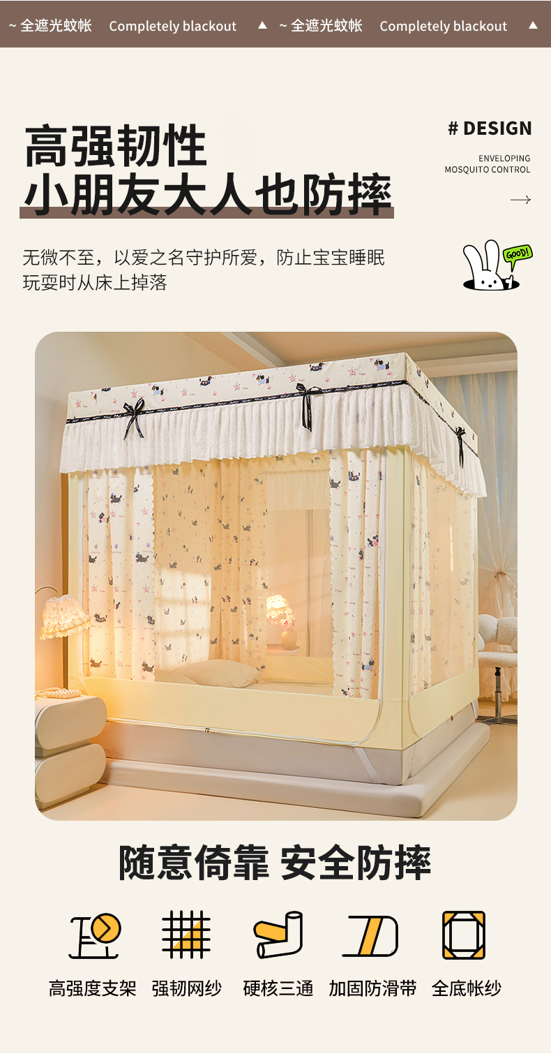 当前位置: 91家纺网 > 商品网购 > 床上用品 > 蚊帐 > 坐床式蚊帐 > 锦逸家居 2026新款遮光坐床蚊帐 蝴蝶结-米黄(不带遮光帘款)