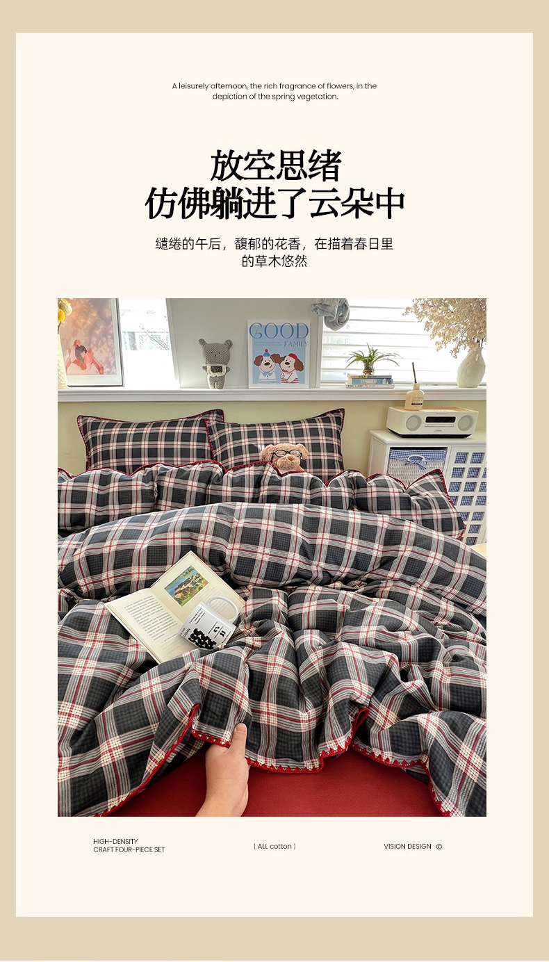 (总)典曼家纺 2025新品法式复古全棉A类磨毛四件套,青釉-绿,青釉-红,春烟-红,春烟-咖,花知语,森蔓