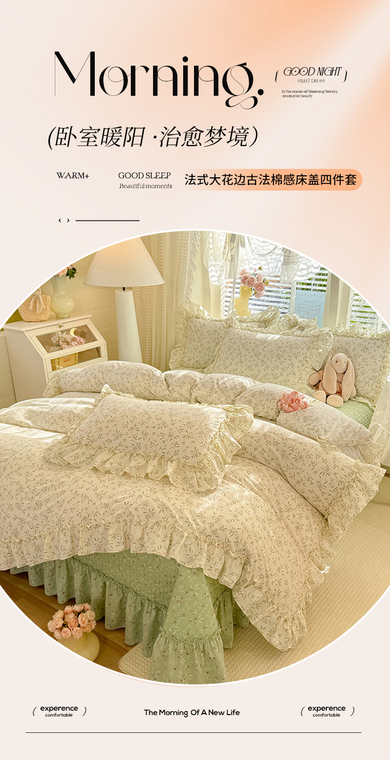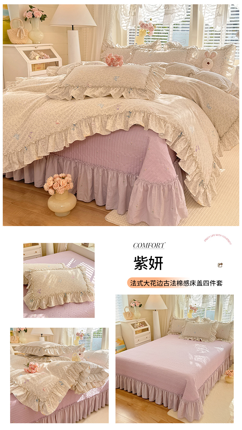 当前位置: 91家纺网 > 商品网购 > 床品套件 > 四件套 > 其它四件套 > 韩约家纺 2026新款法式大花边古法棉感床盖四件套 春熙
