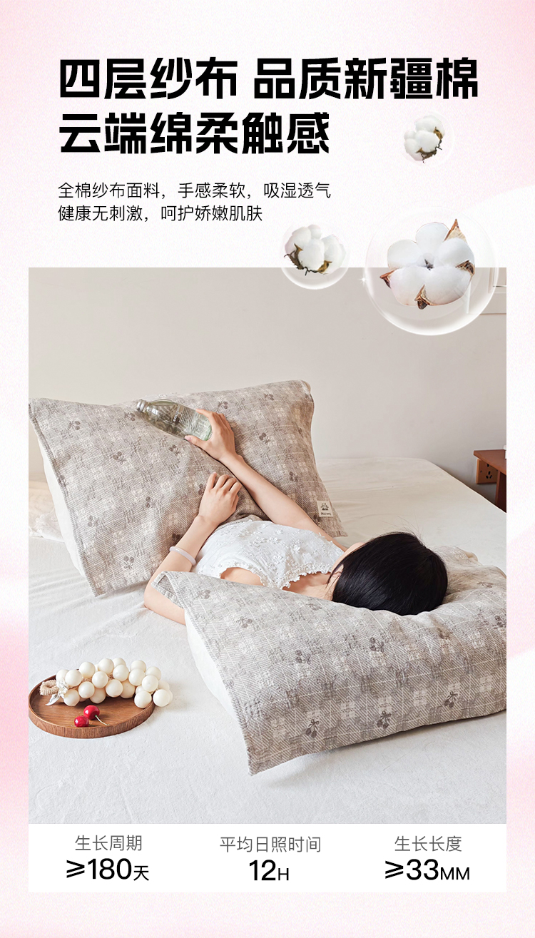商品名称:沐瑟家纺 2026新款安心棉纯棉纱布枕巾 花涧语