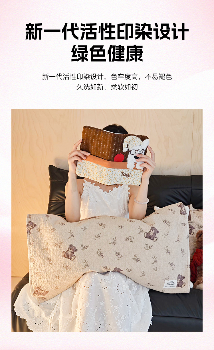 沐瑟家纺 2026新款安心棉纯棉纱布枕巾 小熊碎花