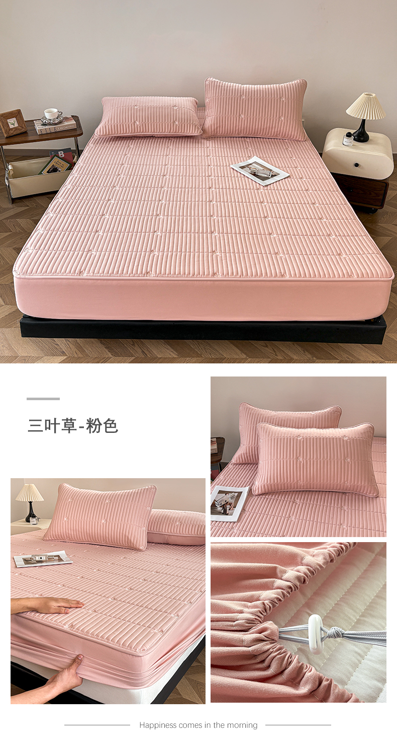 (总)居眠 2025新款防水夹棉床笠-清雅,清雅-粉色,清雅-灰色,清雅-卡其,清雅-绿色,清雅-米白,清雅-深蓝