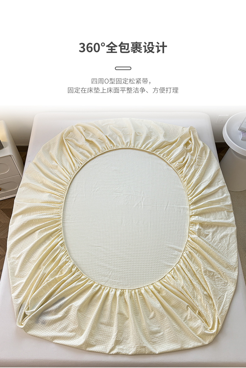 (总)居眠 2026新款全棉印花华夫格床笠,彩带条,花眠,条纹粉,细灰条,小斑点,小樱桃,樱桃小象,月亮星星,组合叠拍图