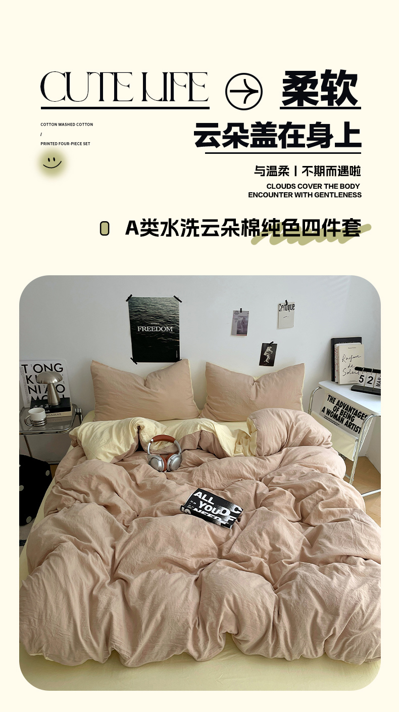 当前位置: 91家纺网 > 商品网购 > 床品套件 > 四件套 > 化纤普通四件套 > 卡斯诺家纺馆 2026新款水洗棉纯色双拼四件套(下载文件包含买家秀) 茶绿卡其