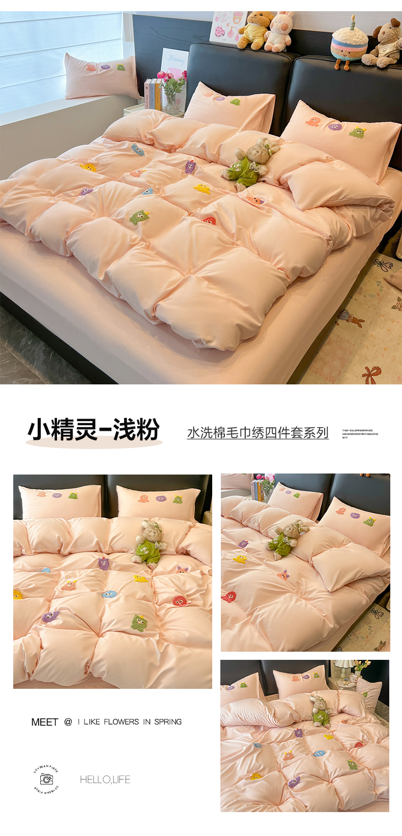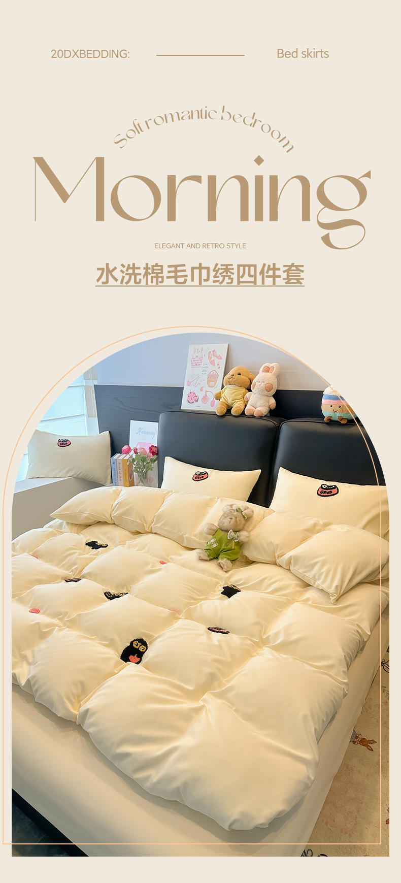 当前位置: 91家纺网 > 商品网购 > 床品套件 > 四件套 > 水洗棉四件套 > 韩巢家纺 2026新款水洗棉毛巾绣四件套 幸运猫-奶黄
