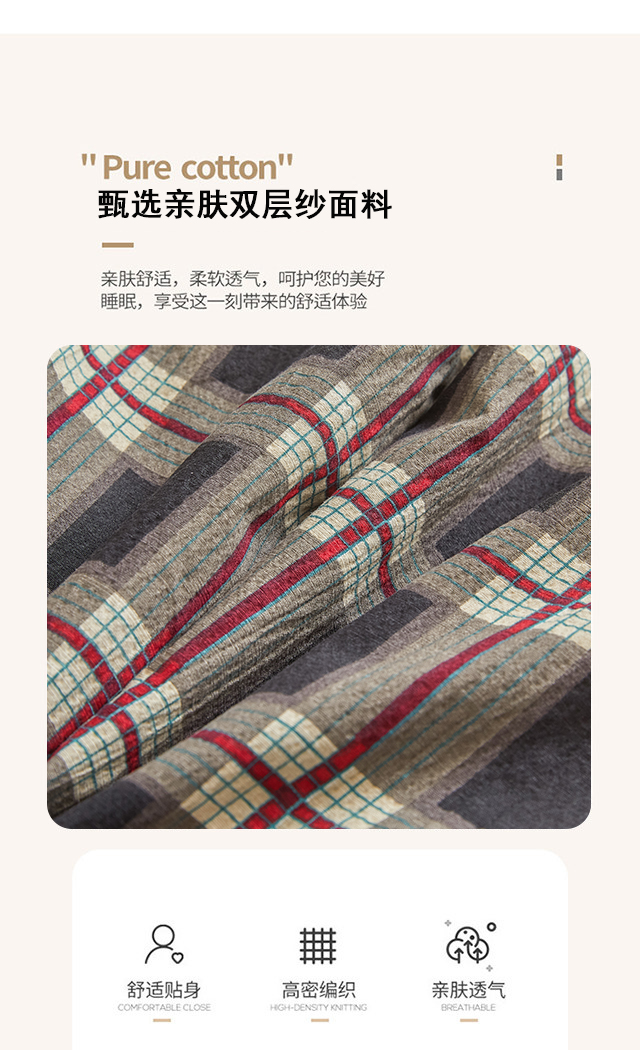 当前位置: 91家纺网 > 商品网购 > 床品套件 > 四件套 > 水洗棉四件套 > 友承家纺 2026最新款双层纱水洗棉被套单件150x200x230被罩学生宿舍三件套四件套床上用品a类母婴 英伦格