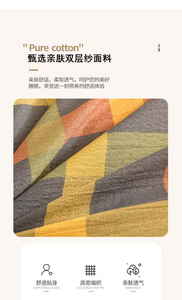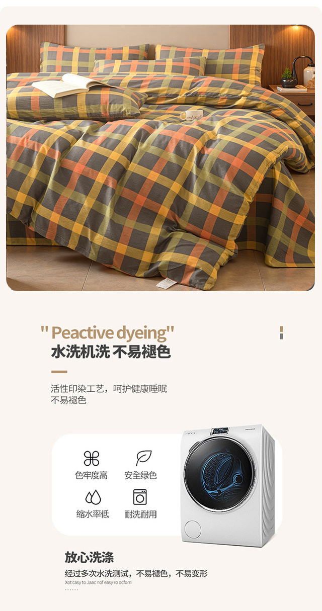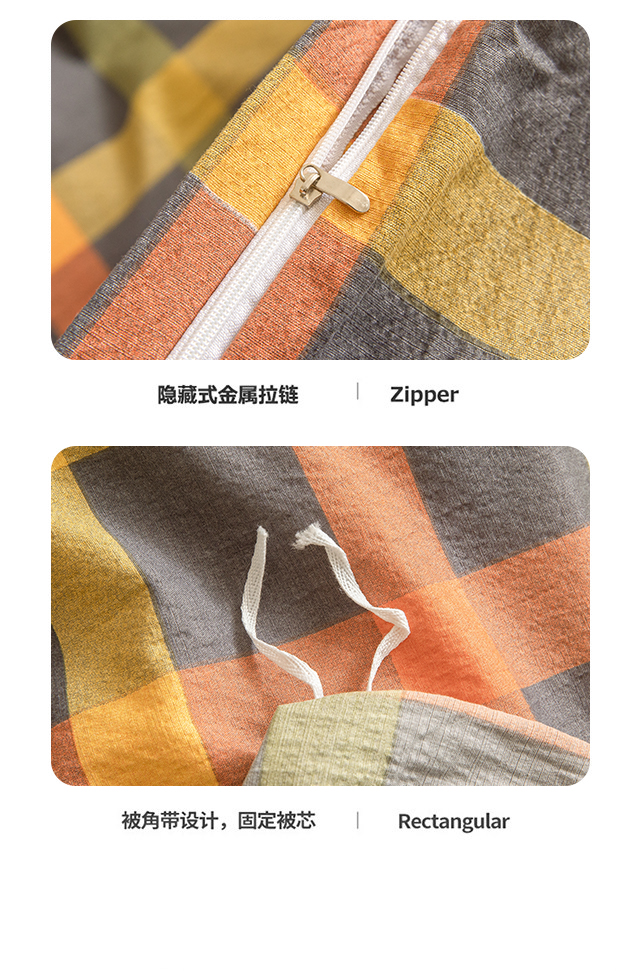 当前位置: 91家纺网 > 商品网购 > 床品套件 > 四件套 > 水洗棉四件套 > 友承家纺 2026最新款双层纱水洗棉被套单件150x200x230被罩学生宿舍三件套四件套床上用品a类母婴 炫彩格