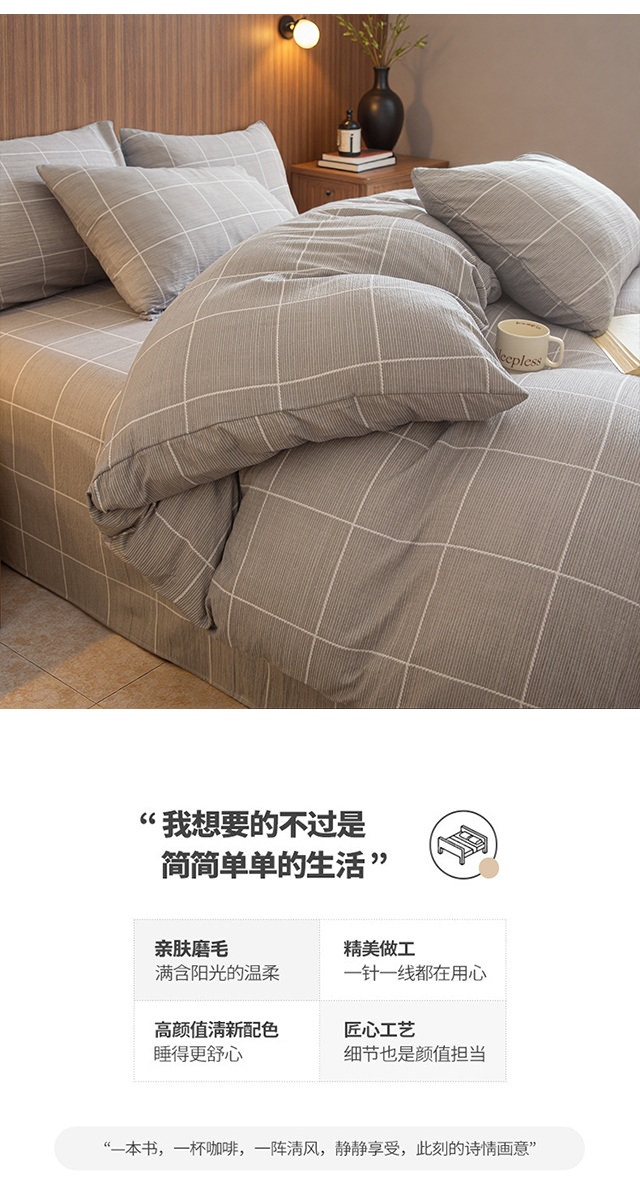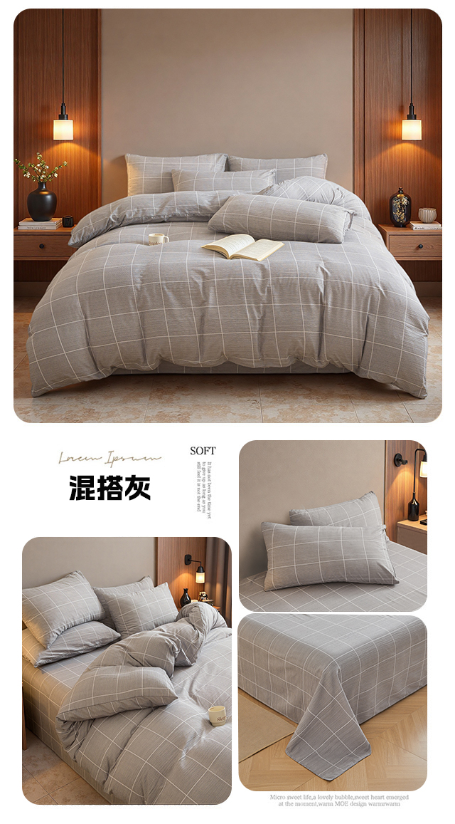 当前位置: 91家纺网 > 商品网购 > 床品套件 > 四件套 > 水洗棉四件套 > 友承家纺 2026最新款水洗棉无印风双层纱木棉四件套被套床单卧室床上用品学生宿舍被罩三件套床单枕套 混搭灰