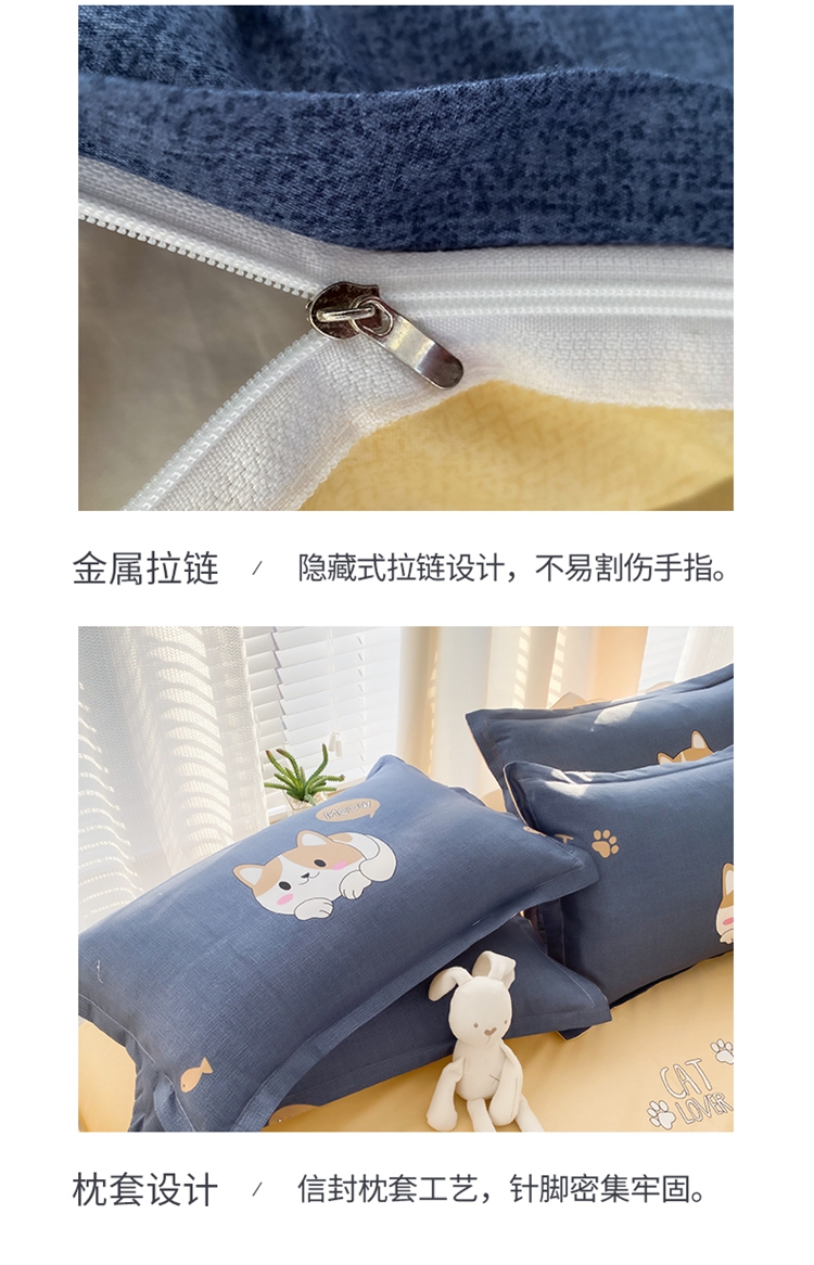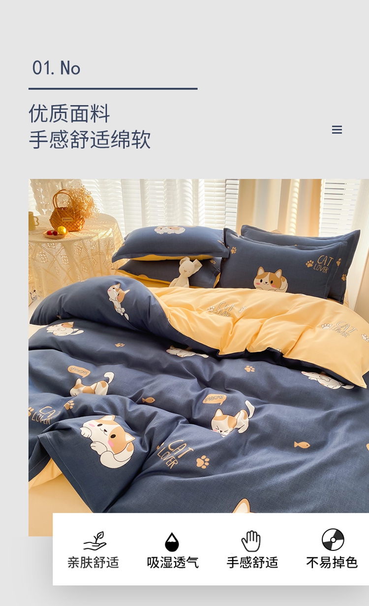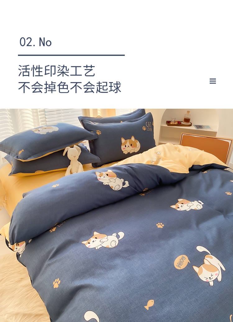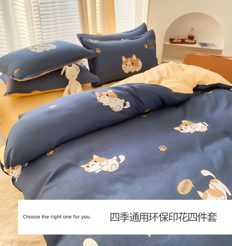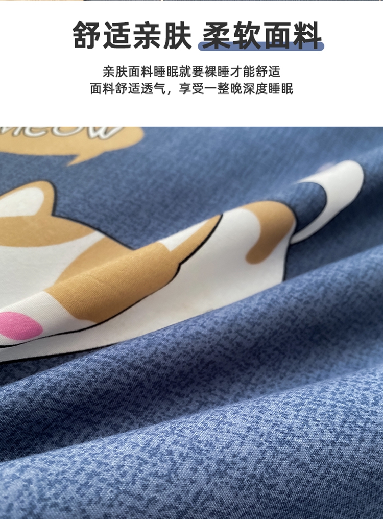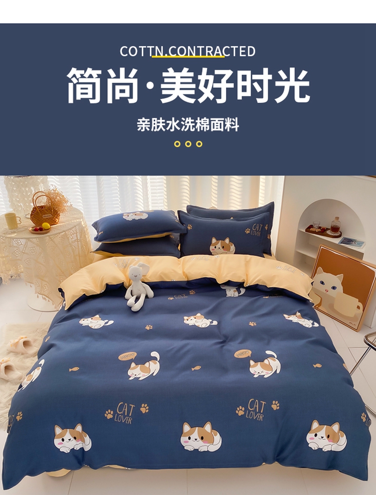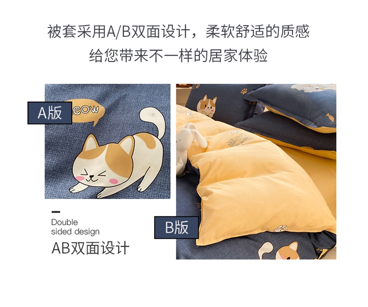 商品名称:友承家纺 2026新款床上用品磨毛水洗棉四件套被单被套学生宿舍单人三件套被罩单件四季通用 淘气猫兰