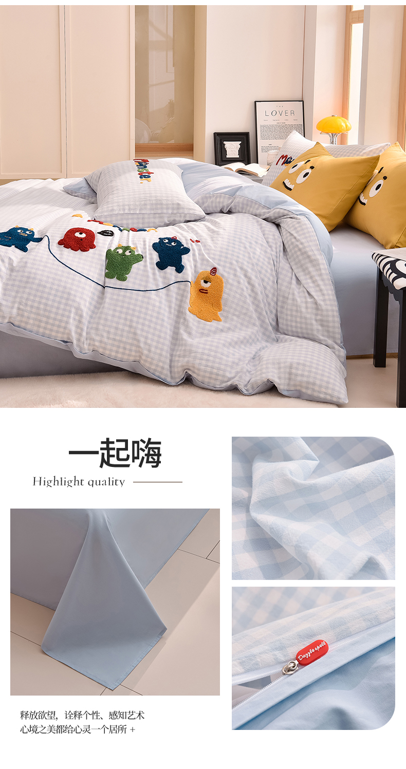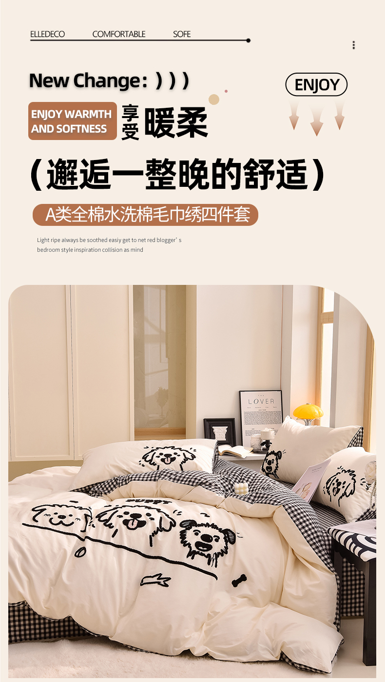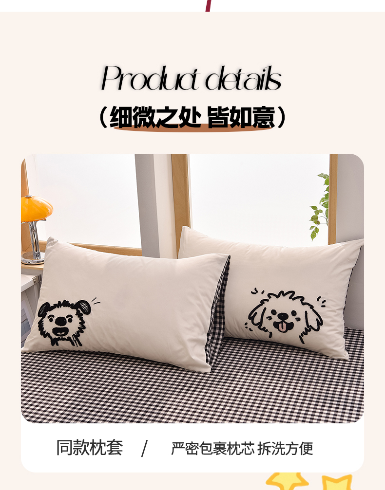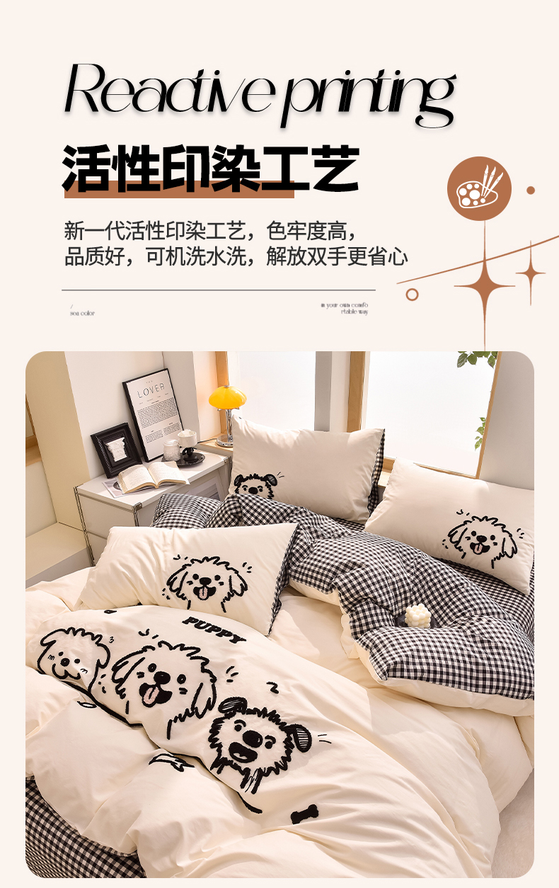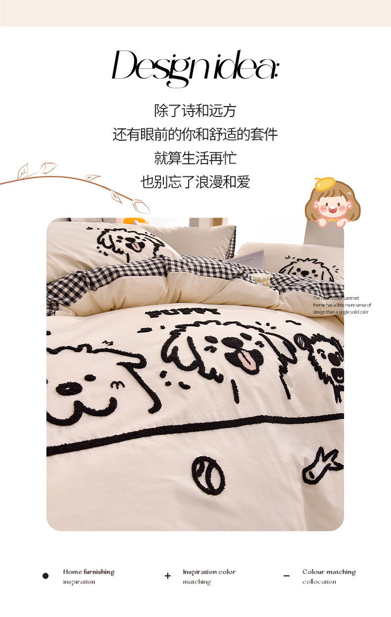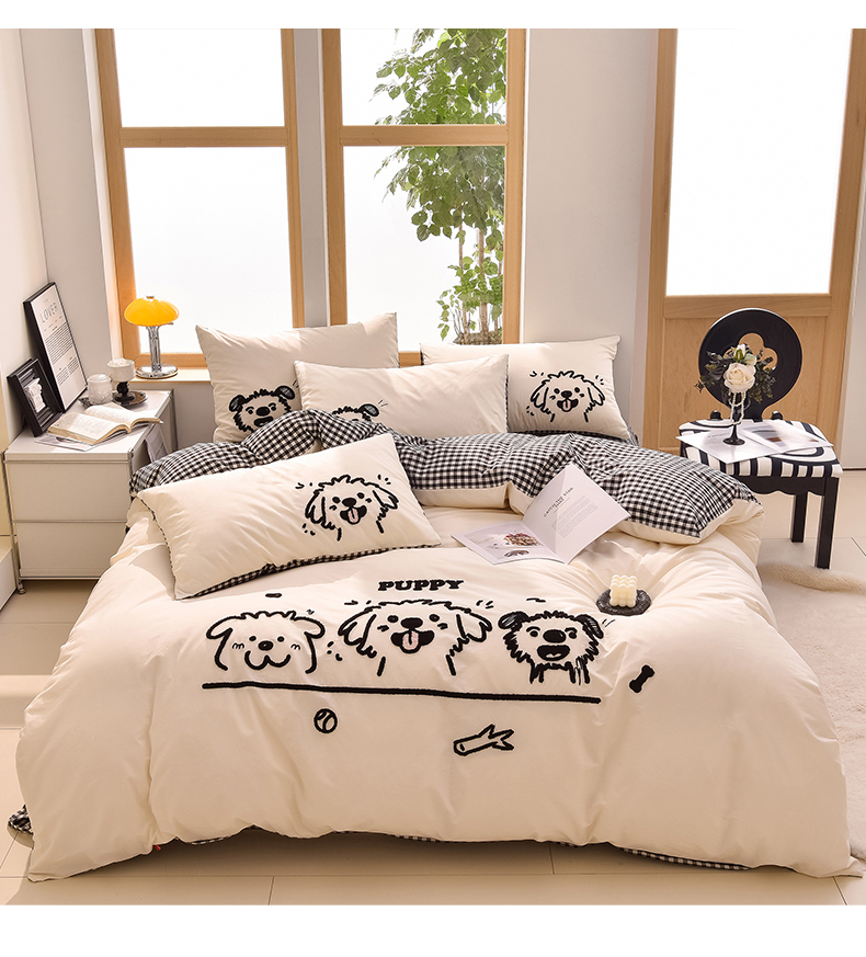 当前位置: 91家纺网 > 商品网购 > 床品套件 > 四件套 > 全棉普通四件套 > 炫拼家纺 2026新款多巴胺系列A类全棉40支水洗棉卡通毛巾绣四件套 多巴胺-潦草小狗