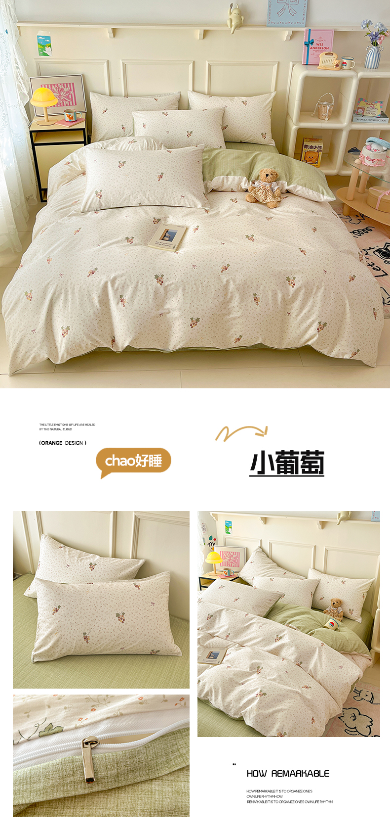 (总)西引力 2025新款纯棉磨毛数码印花单品四件套,简爱,小松树,半夏,初恋,大耳朵,锦觅,南瓜,平行线,小蘑菇,小苹果,羽叶,竹叶