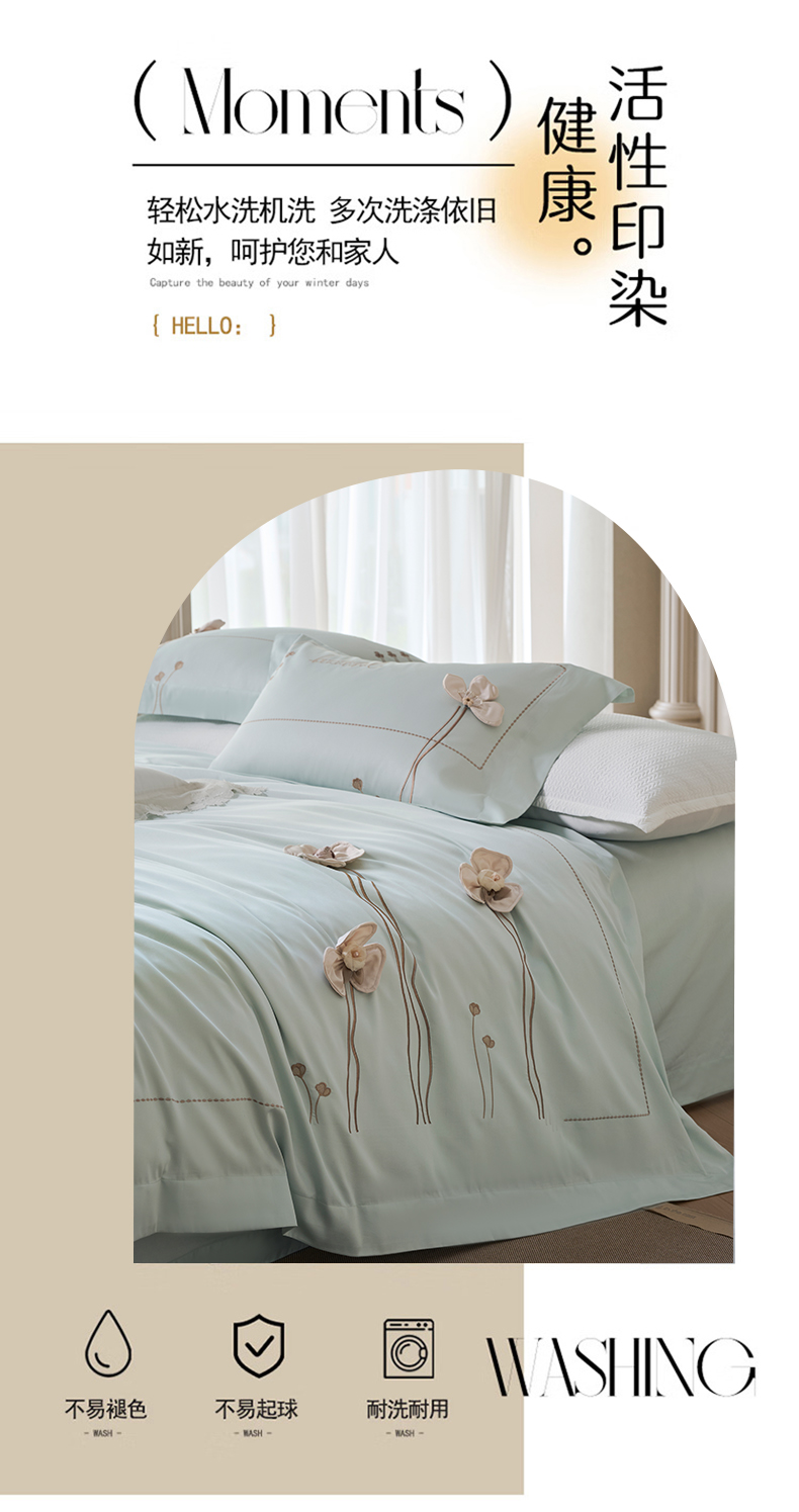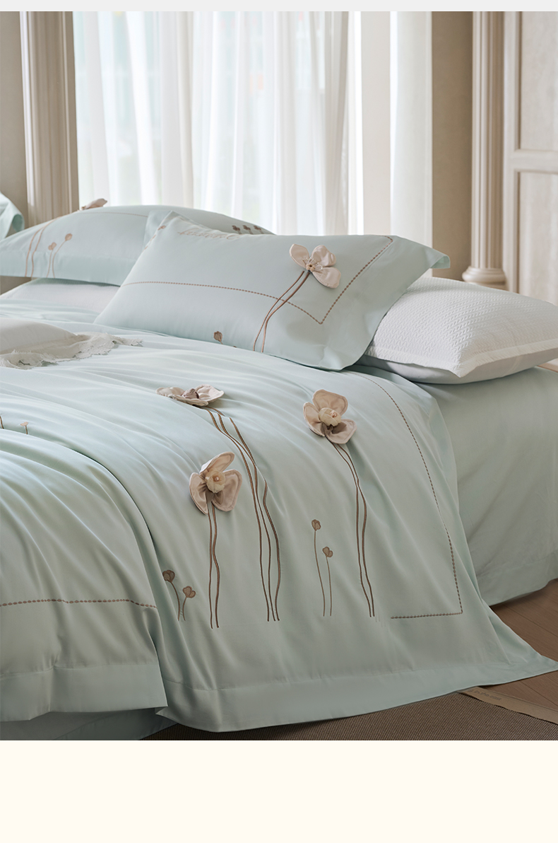 (总)诗黛尔 2026春夏新款60S长绒棉刺绣雅姿系列四件套,雅姿- 浅茶杏,雅姿-丁香紫,雅姿-豆绿,雅姿-粉豆沙,雅姿-粉玉,雅姿-红豆沙,雅姿-天蓝,雅姿-银灰