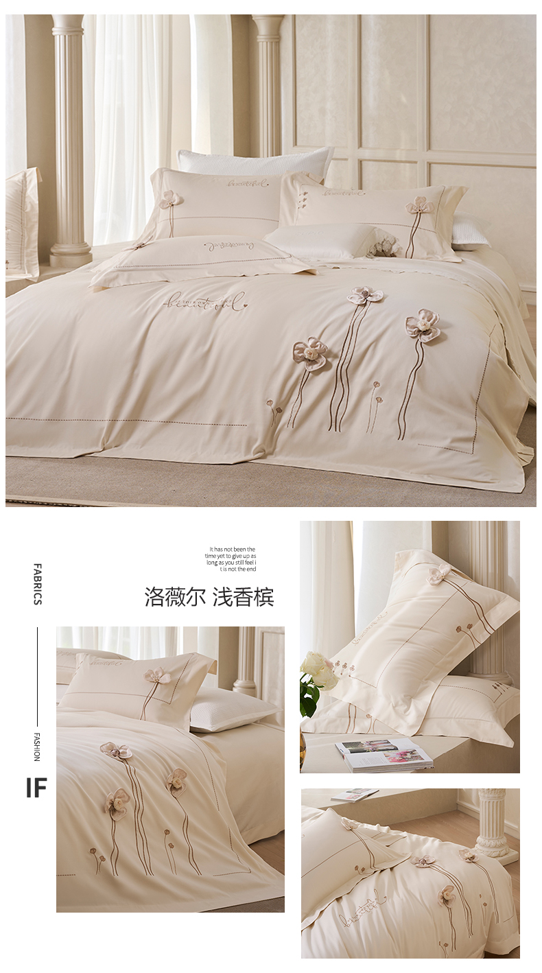 (总)诗黛尔 2026春夏新款长绒棉刺绣四件套黎境系列,黎境-香槟金,黎境-极光蓝,黎境-卡其色,黎境-落樱粉,黎境-绅士灰