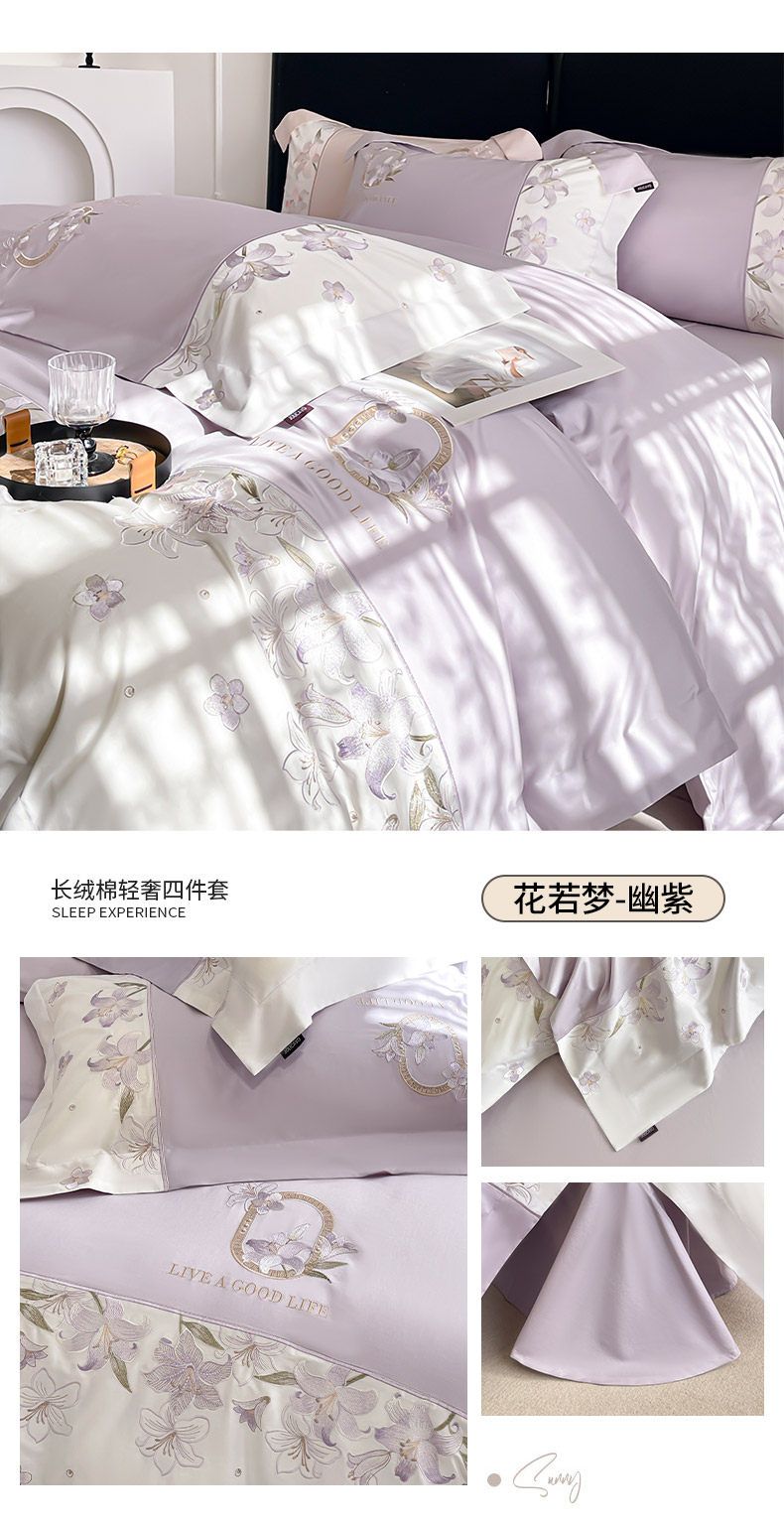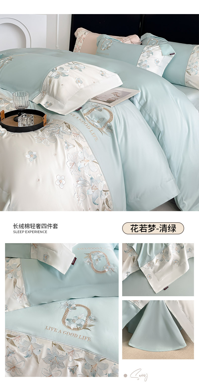 (总) 2025春夏长绒棉四件套纯棉全棉轻奢风床单被套重工刺绣床上用品,芊羽梦-白粉,芊羽梦-茶绿,芊羽梦-黛紫,芊羽梦-慕蓝,芊羽梦-颜粉