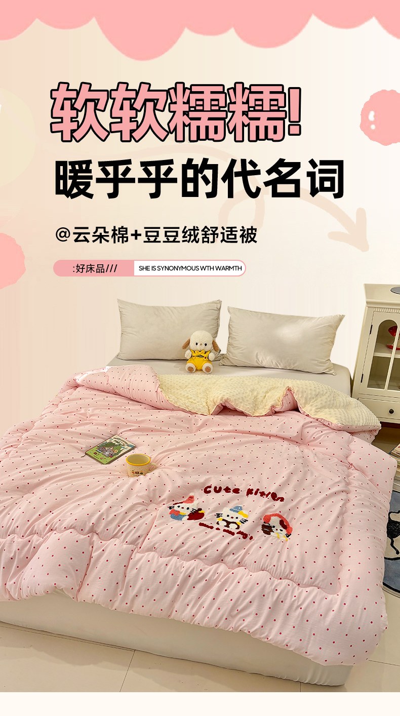 商品名称:梦洋家纺 2026新款云朵棉豆豆绒被被子被芯 草莓猫