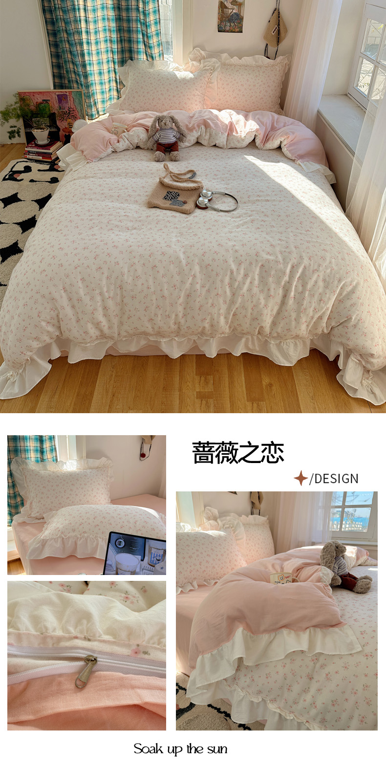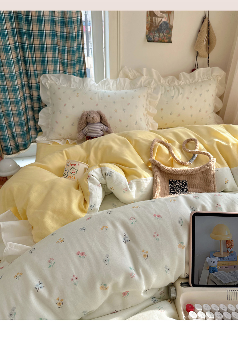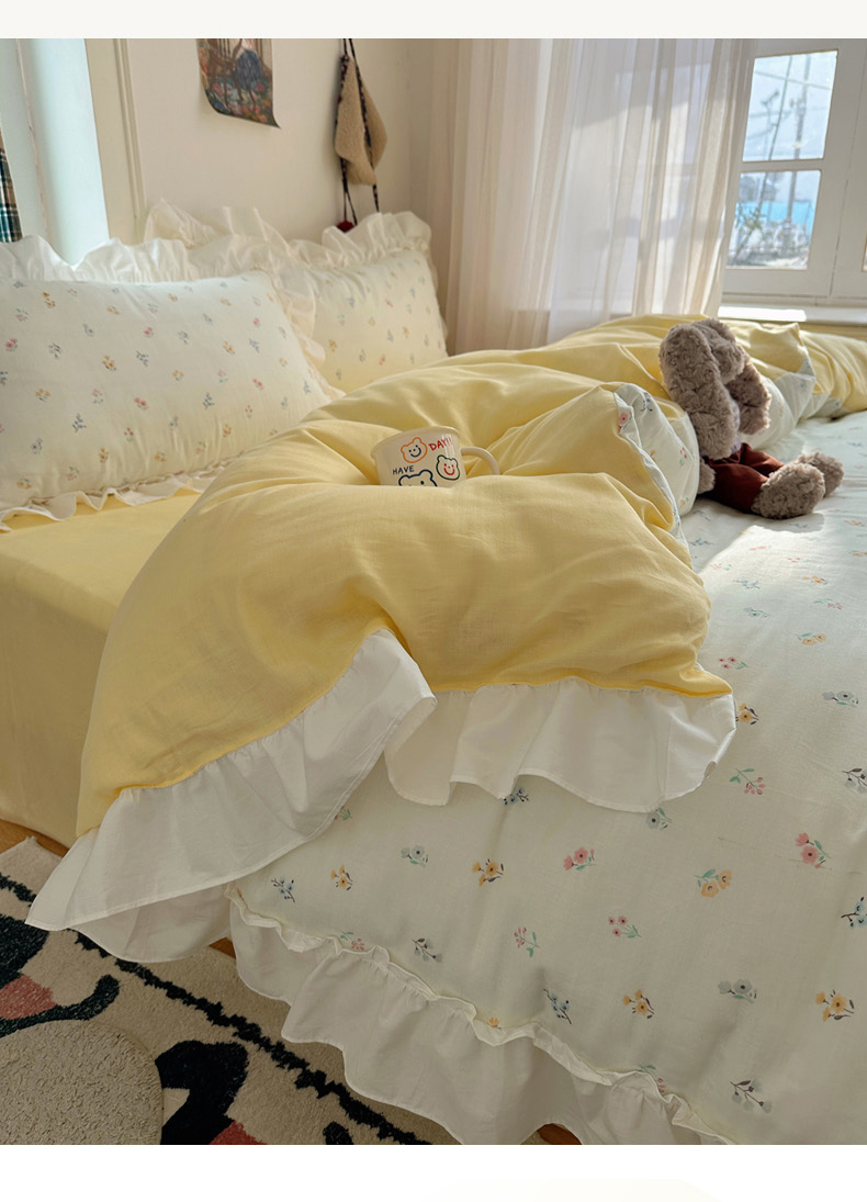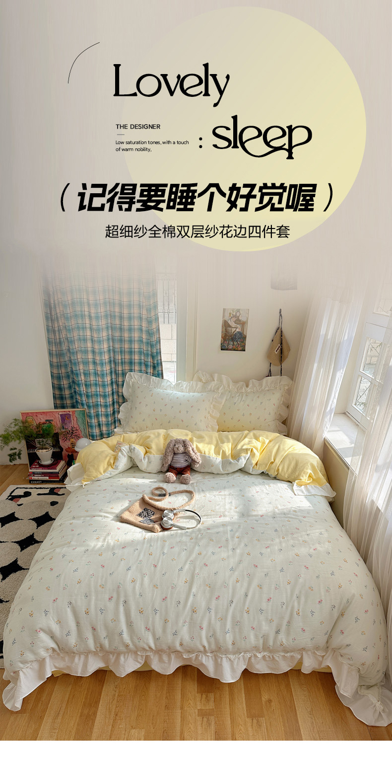 当前位置: 91家纺网 > 商品网购 > 床品套件 > 四件套 > 全棉普通四件套 > 丽涵家纺 2026新款法式立体花边全棉纯棉双层纱四件套 花园密语