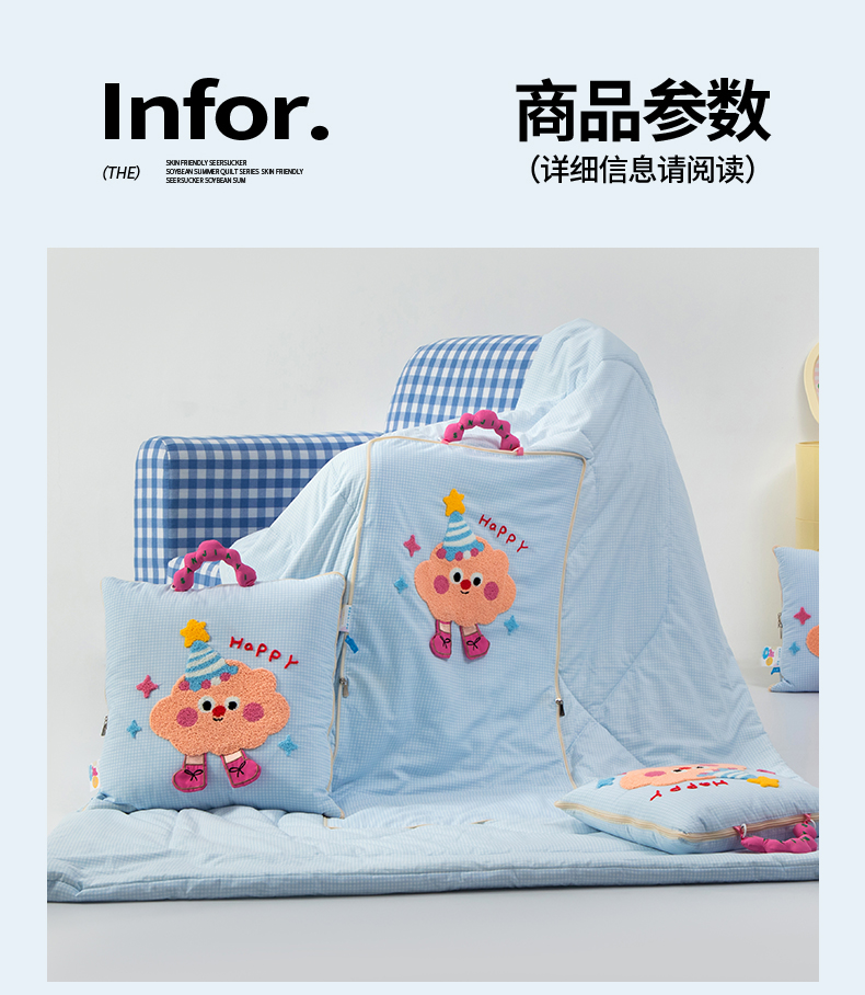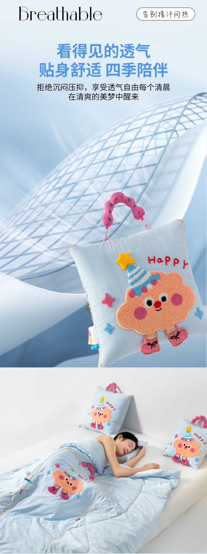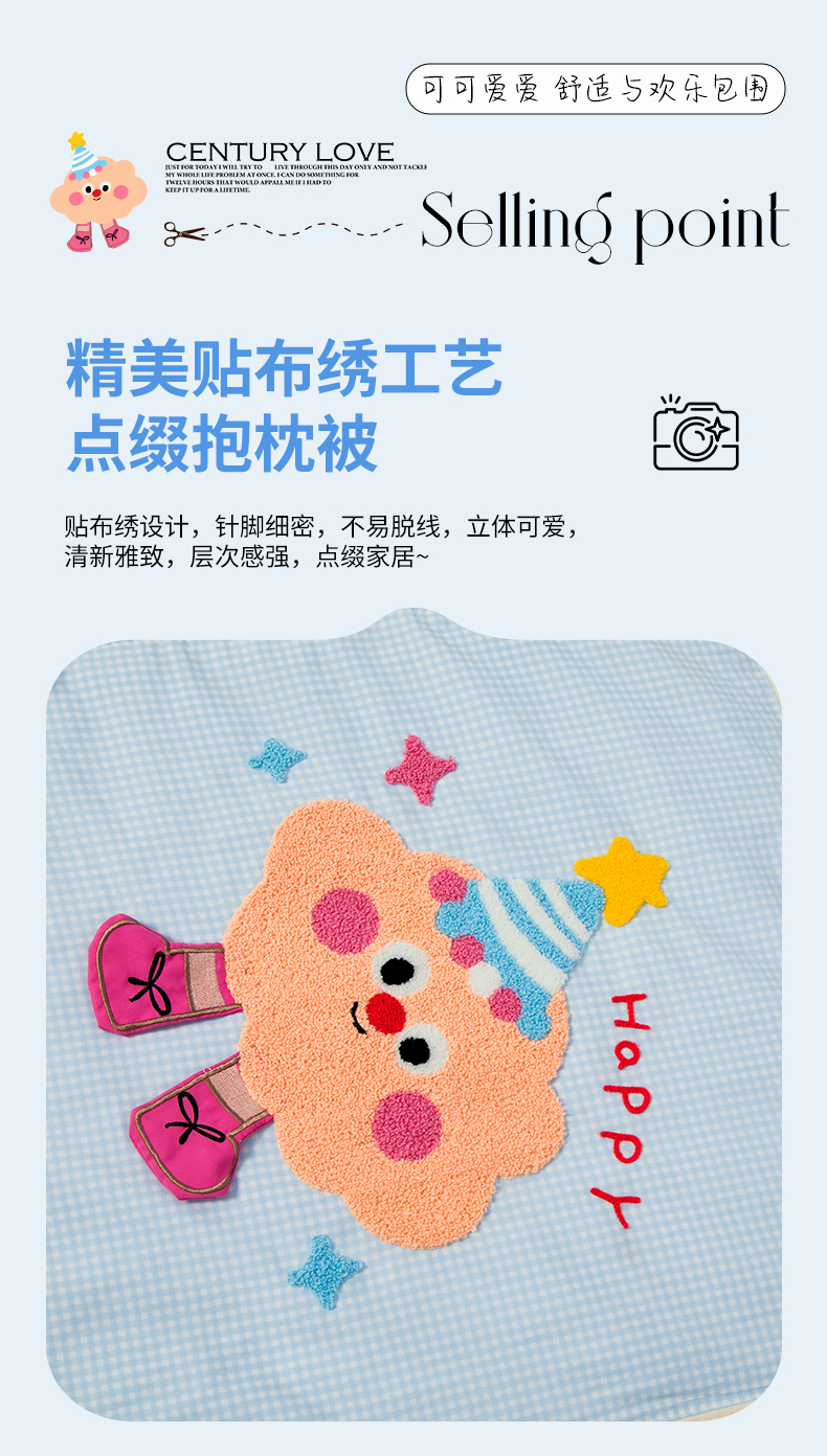 (总)雷娜家居 2025款加厚牛奶绒Happy Toast贴布绣抱枕被,藏青,橙橘,豆绿,海蓝,湖绿,暖玉色,深灰,温柔紫
