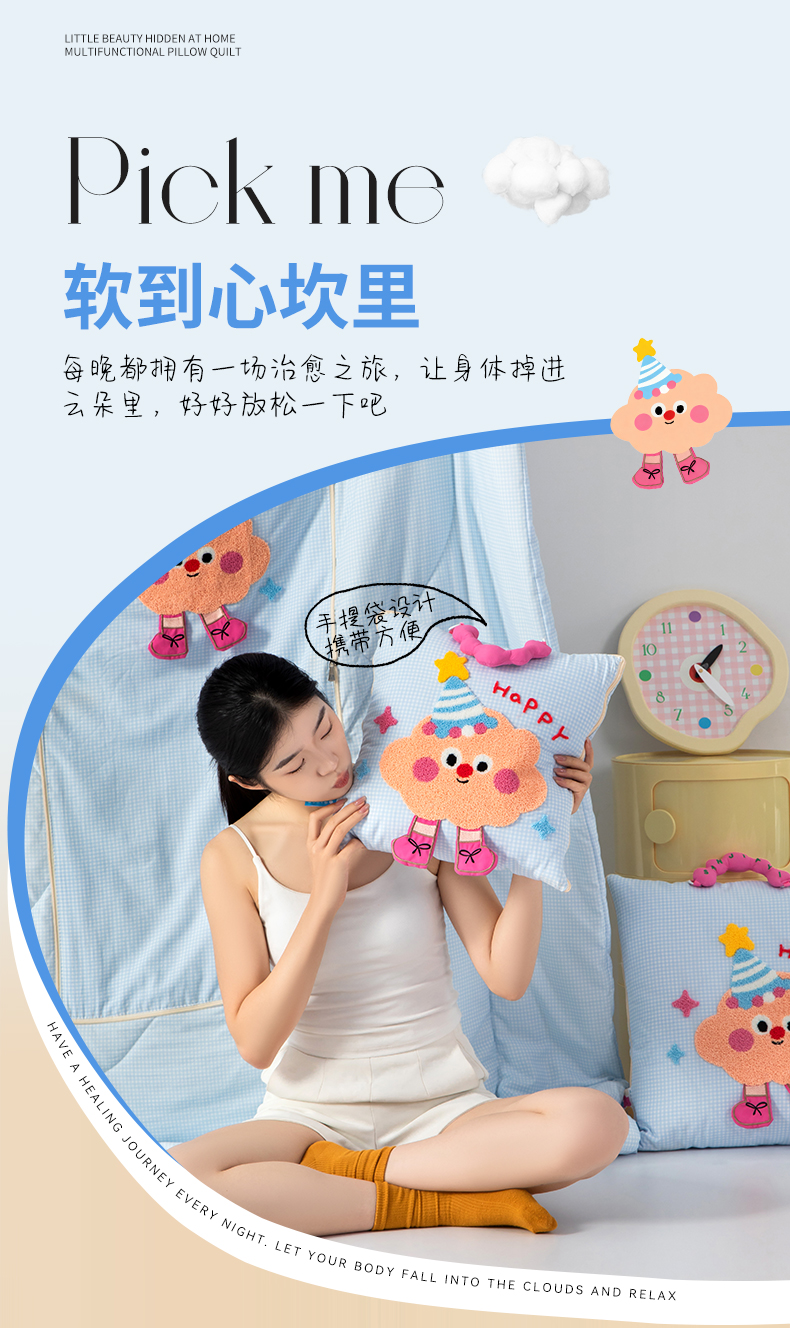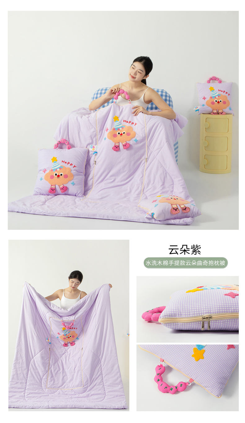 (总)雷娜家居 2026新款水洗木棉手提款云朵曲奇抱枕被,云朵粉,云朵蓝,云朵绿,云朵紫
