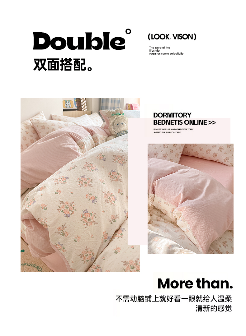 当前位置: 91家纺网 > 商品网购 > 床品套件 > 四件套 > 水洗棉四件套 > 云玲时尚 2026新款古法水洗仿棉云感纱四件套 甜品小猫