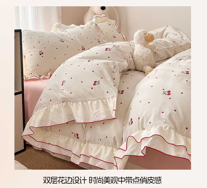 (总)吾欢心 2026春夏新款古法水洗仿棉韩版双层花边四件套,KT猫,斑马,彩色蝴蝶结,卡通小狗,可爱星星人,萌宠宝贝,秘境花园,奶萌小狗,田园趣味,汐颜,小草莓,樱桃派