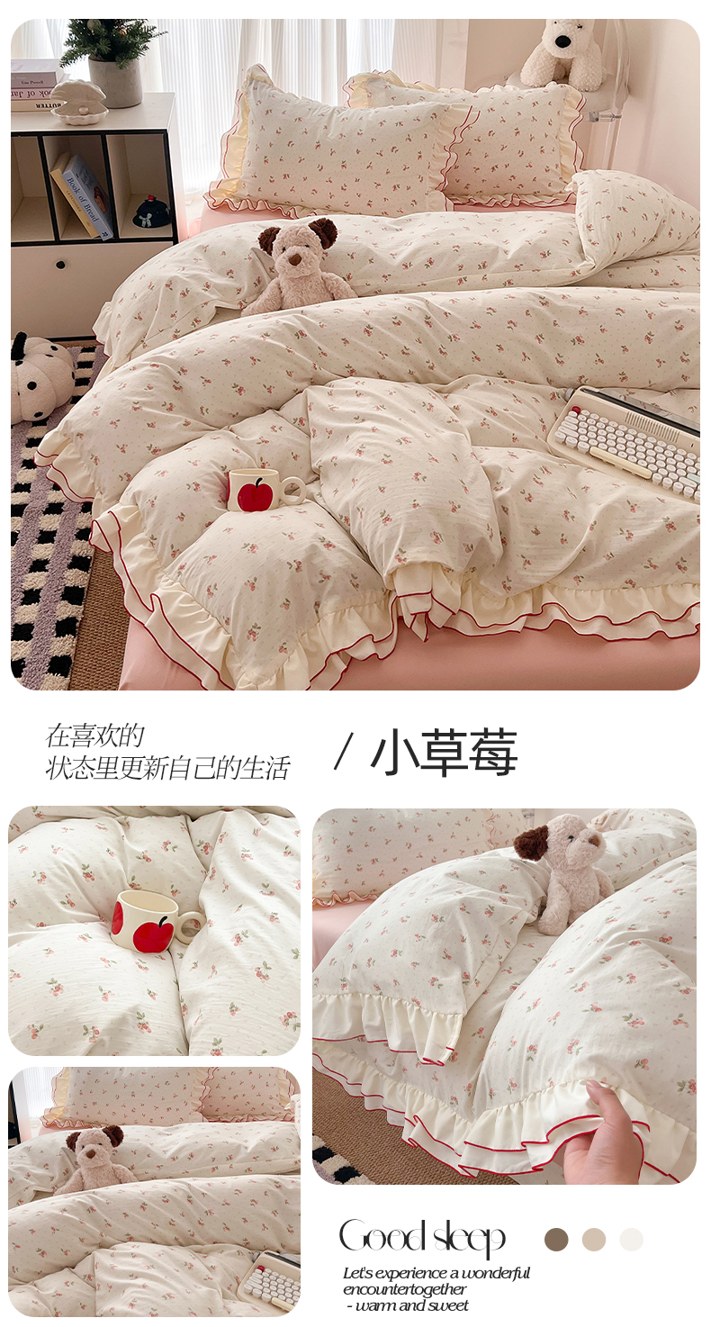 (总)吾欢心 2024新款韩版花边牛奶绒四件套,爱心草莓,爱心小樱桃,彩色郁金香,初恋蔷薇,调皮小兔,花颂,花野迷踪,花园时光,花园小熊,可爱狗狗,可爱小熊,绿爱心,梦境女孩,莫奈花园,奶油草莓,兔子小熊,晚安兔,鲜花萝莉,小雏菊,小柑橘,樱桃小兔,郁金香女孩,郁金香小兔,元气桃桃