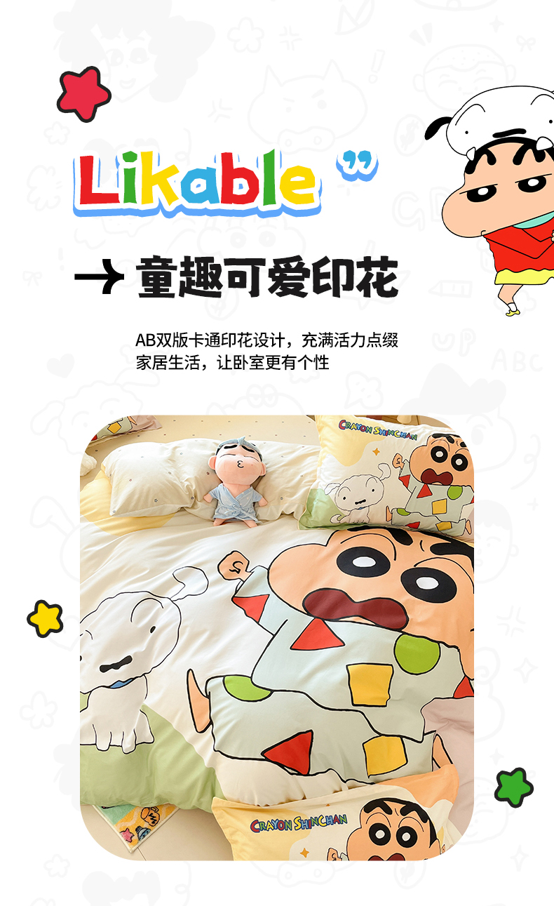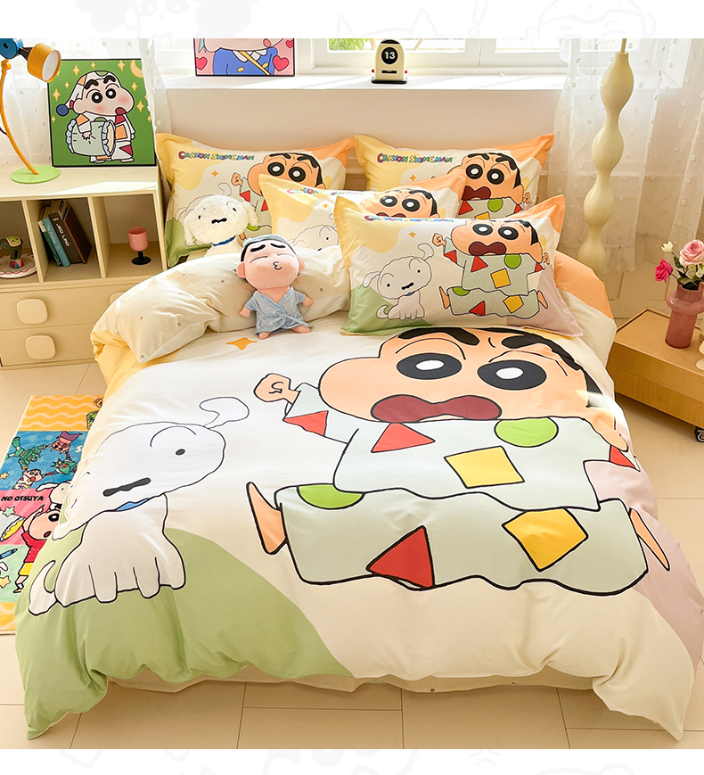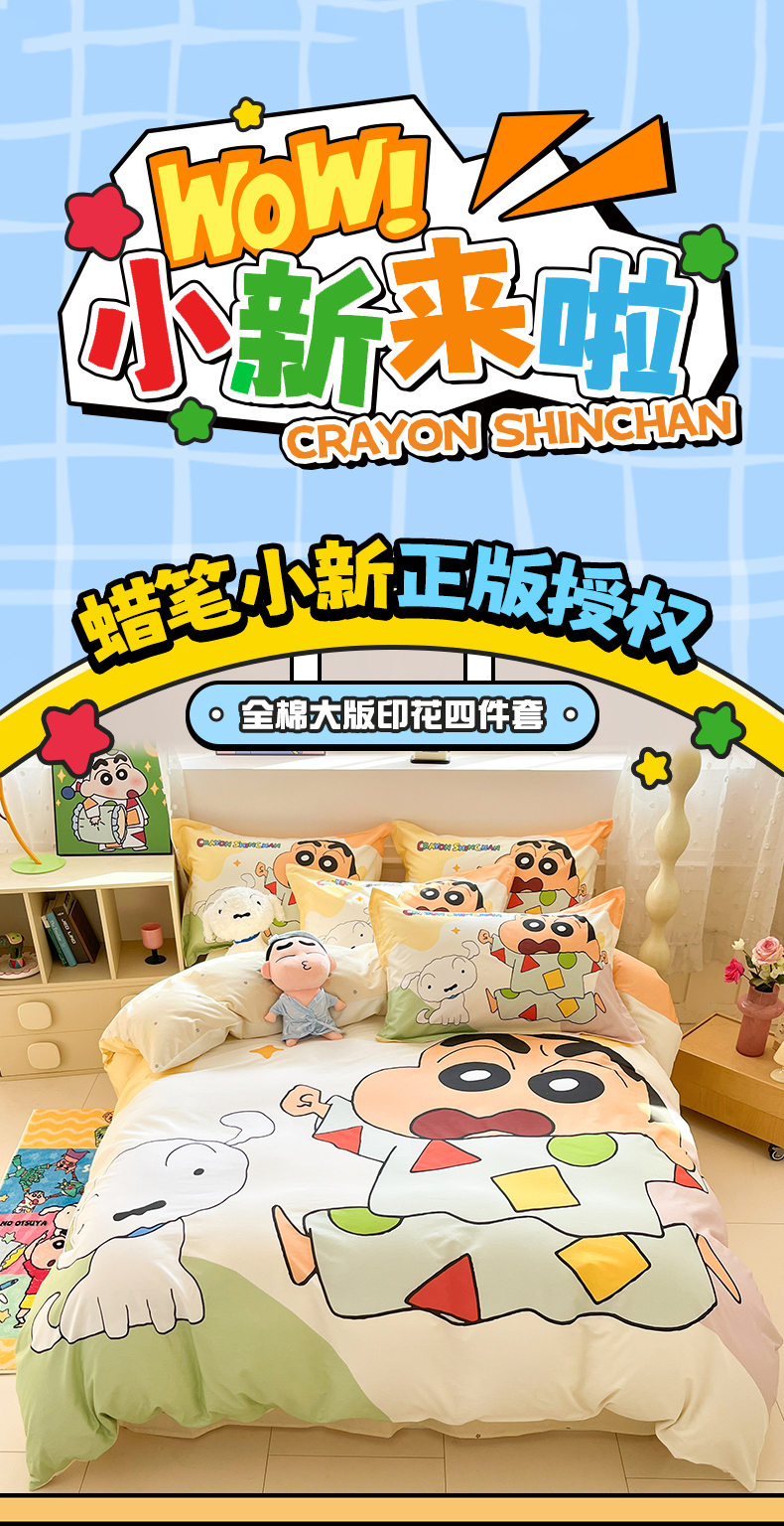 当前位置: 91家纺网 > 商品网购 > 床品套件 > 四件套 > 全棉普通四件套 > 博雅 2026新款蜡笔小新正版授权全棉纯棉大版四件套 大版-睡衣小新