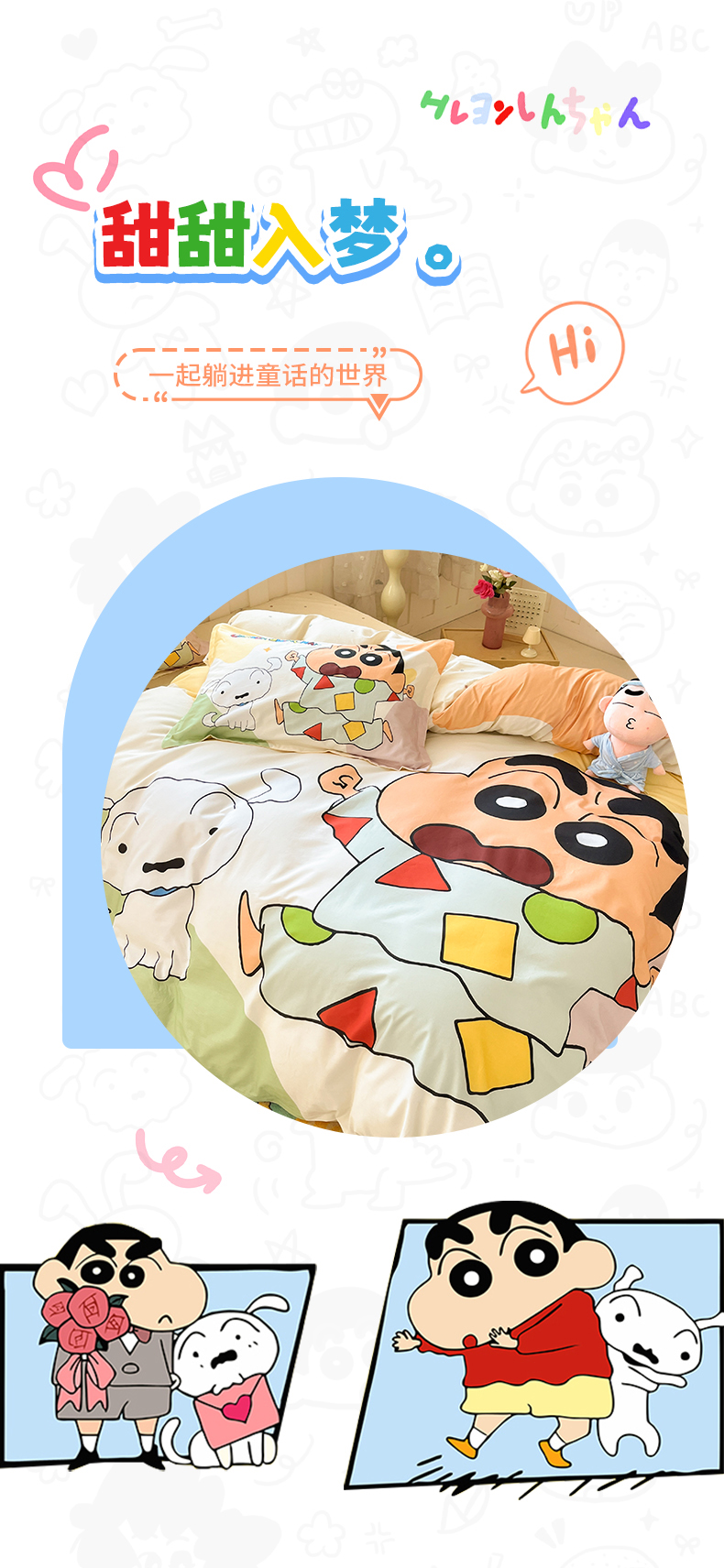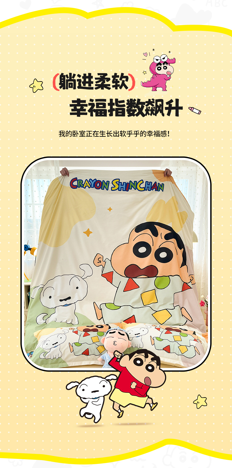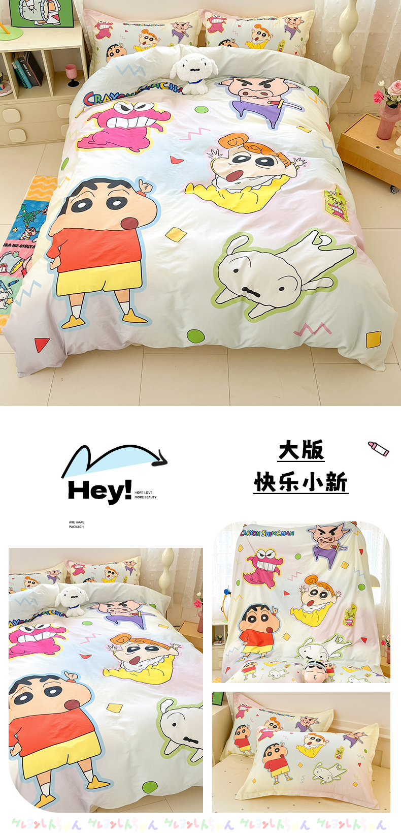 当前位置: 91家纺网 > 商品网购 > 床品套件 > 四件套 > 全棉普通四件套 > 博雅 2026新款蜡笔小新正版授权全棉纯棉大版四件套 大版-睡衣小新