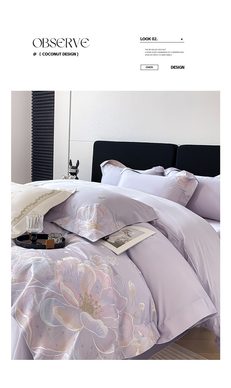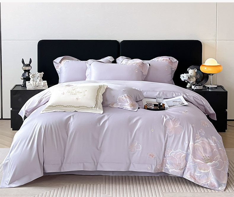 2026马年特惠新品A类长绒棉纯棉四件套100全棉重工刺绣被套床单床笠轻奢高级感床上用品-花之语 花之语-黛紫