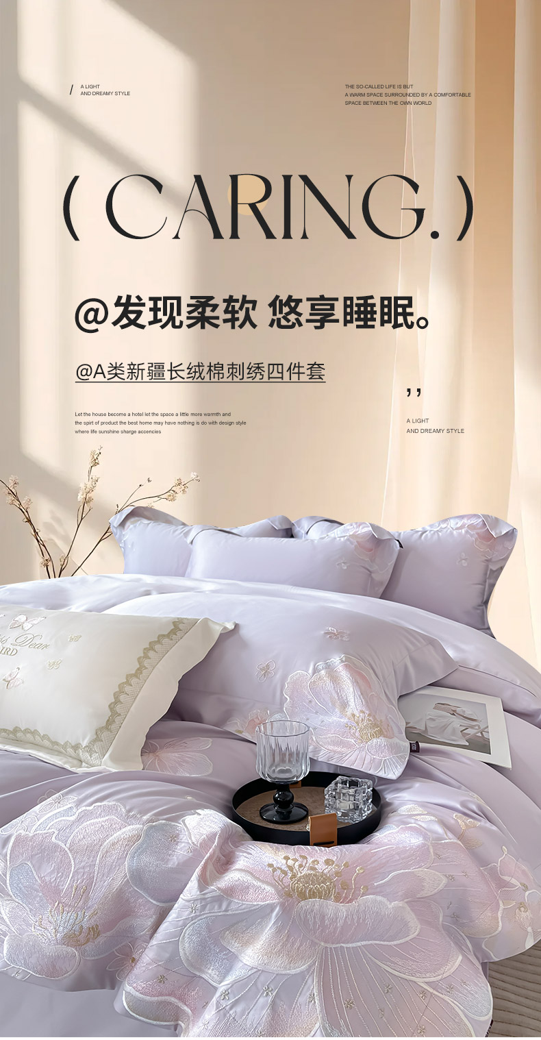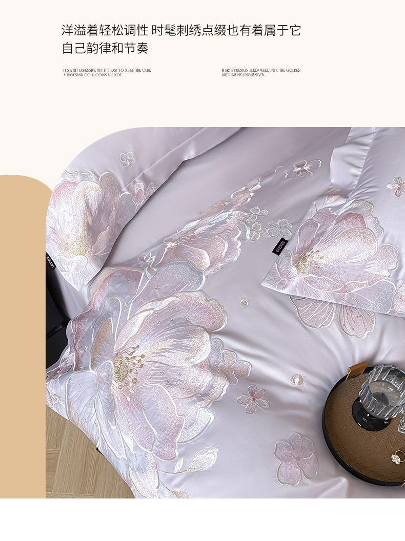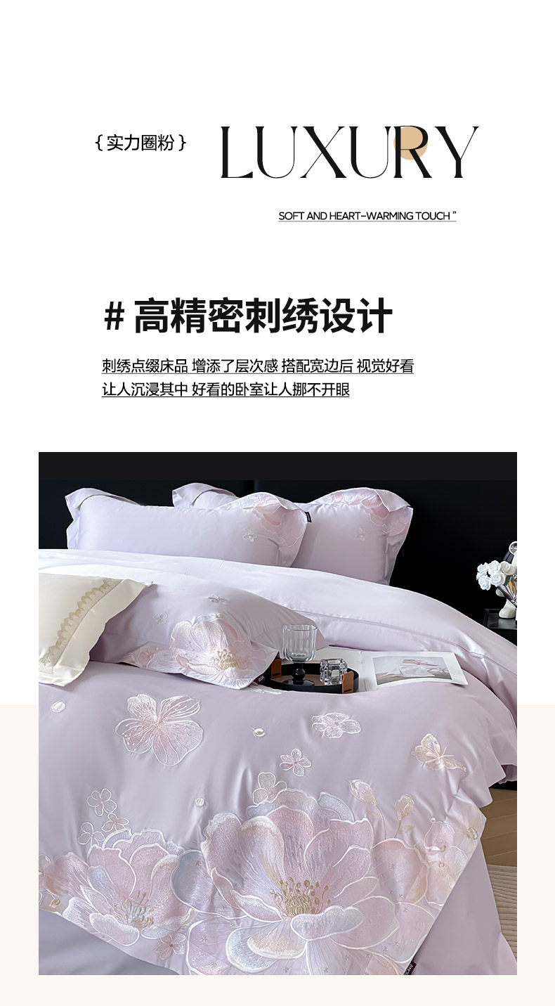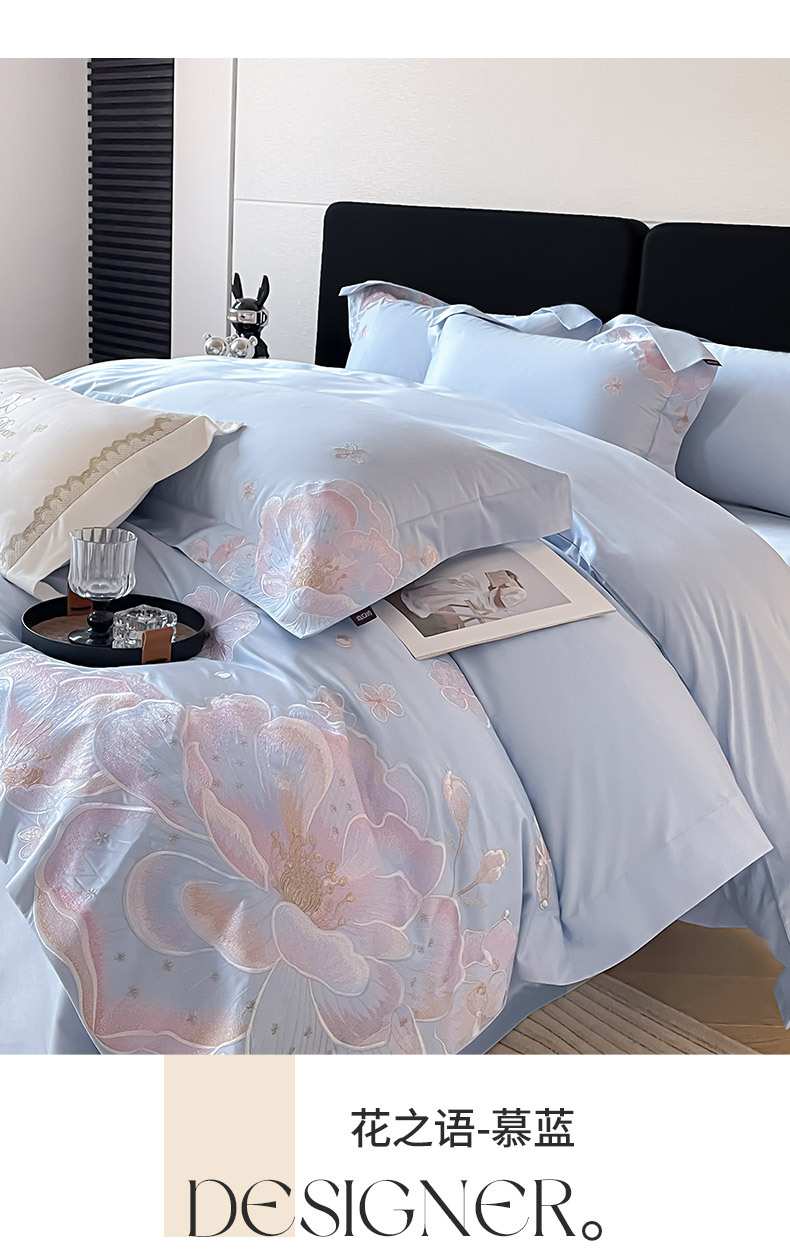 (总)2026马年特惠新品A类长绒棉纯棉四件套100全棉重工刺绣被套床单床笠轻奢高级感床上用品-花之语,花之语-颜粉,花之语-白粉,花之语-黛紫,花之语-慕蓝