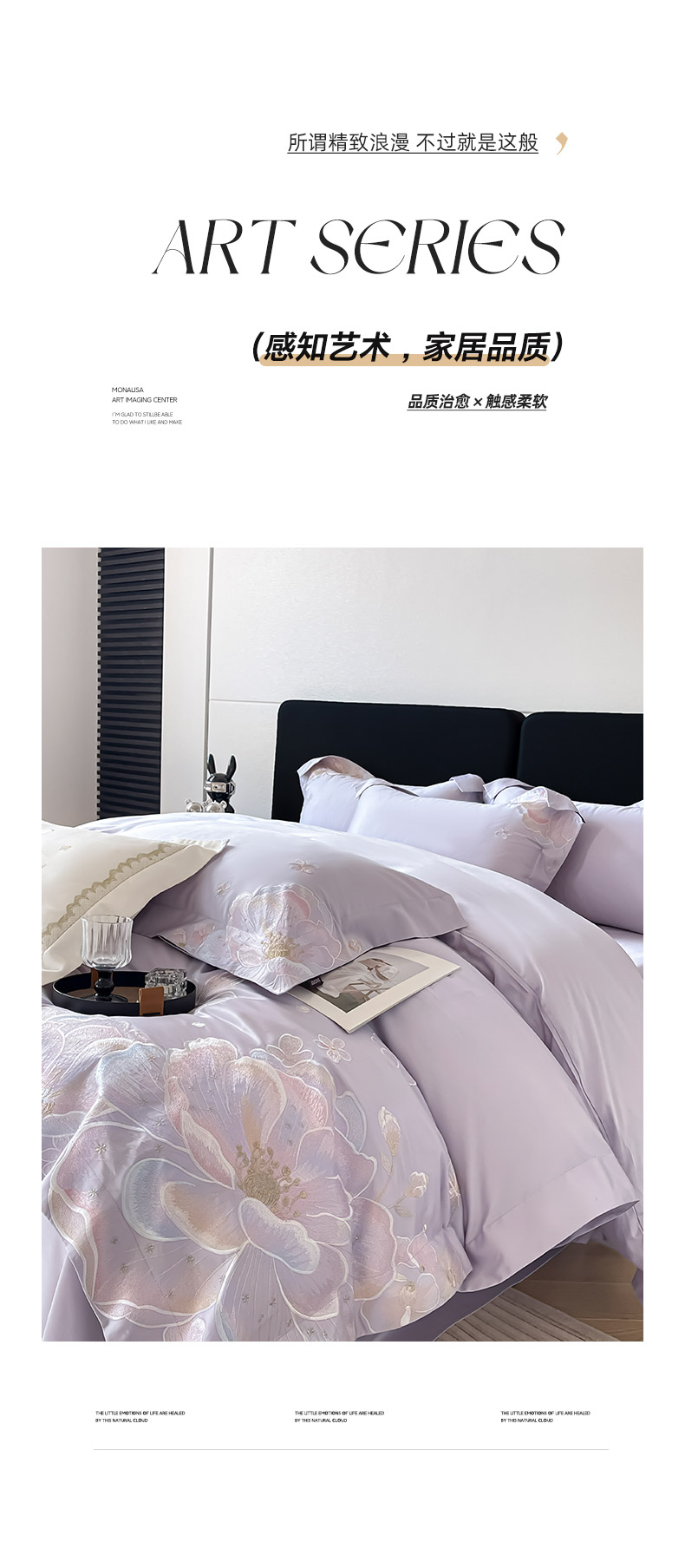 商品名称:2026马年特惠新品A类长绒棉纯棉四件套100全棉重工刺绣被套床单床笠轻奢高级感床上用品-花之语 花之语-黛紫