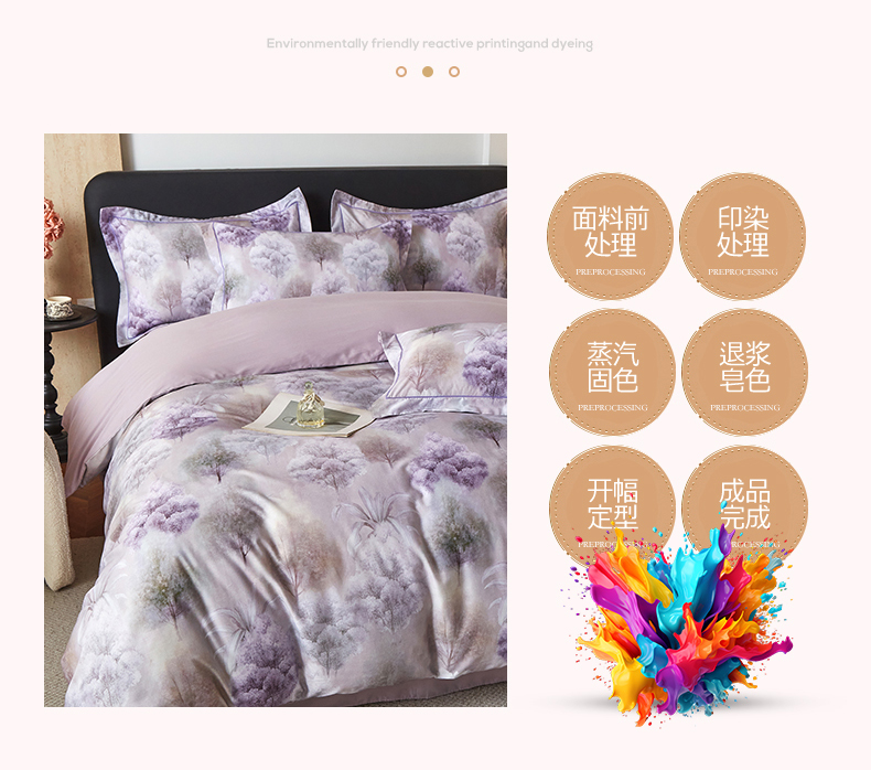 商品名称:曼秀琳 2026新款铂金棉数码印花四件套(全棉133*76) 可提供买家秀图片 沐雨花-紫