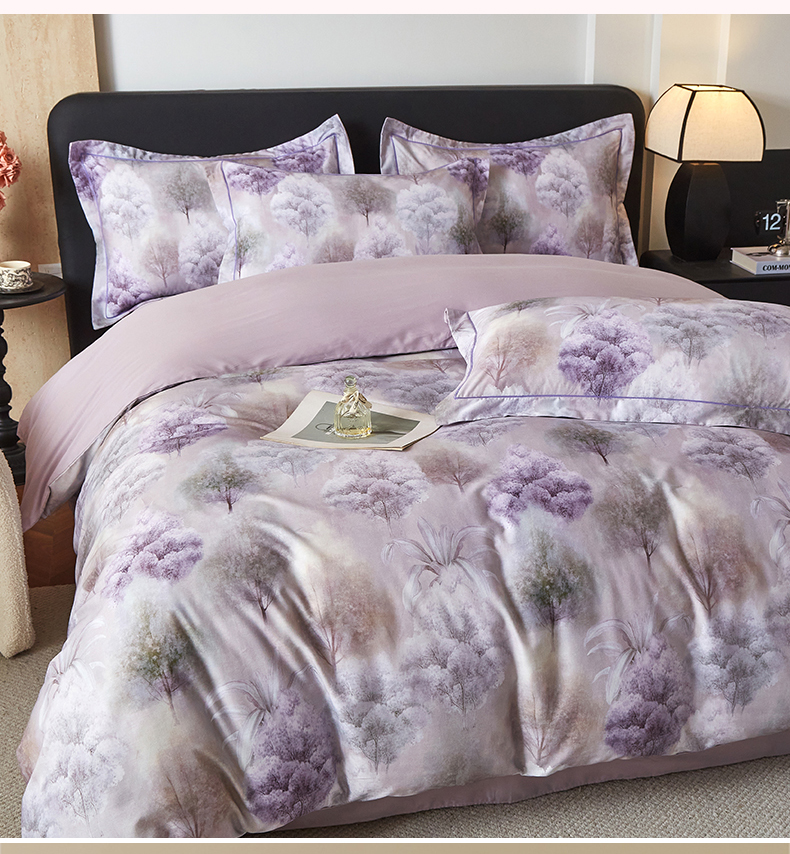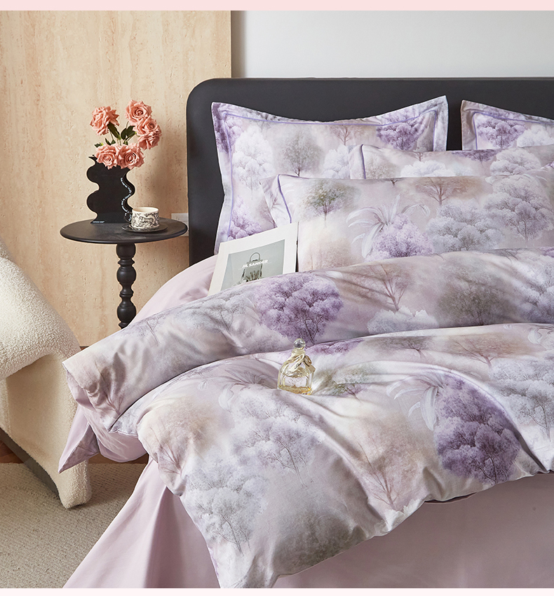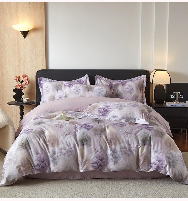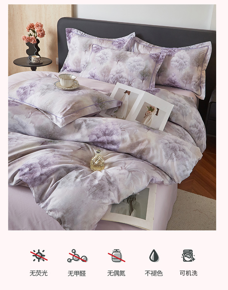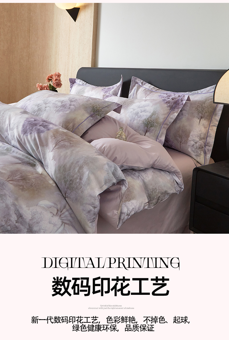 曼秀琳 2026新款铂金棉数码印花四件套(全棉133*76) 可提供买家秀图片 沐雨花-紫