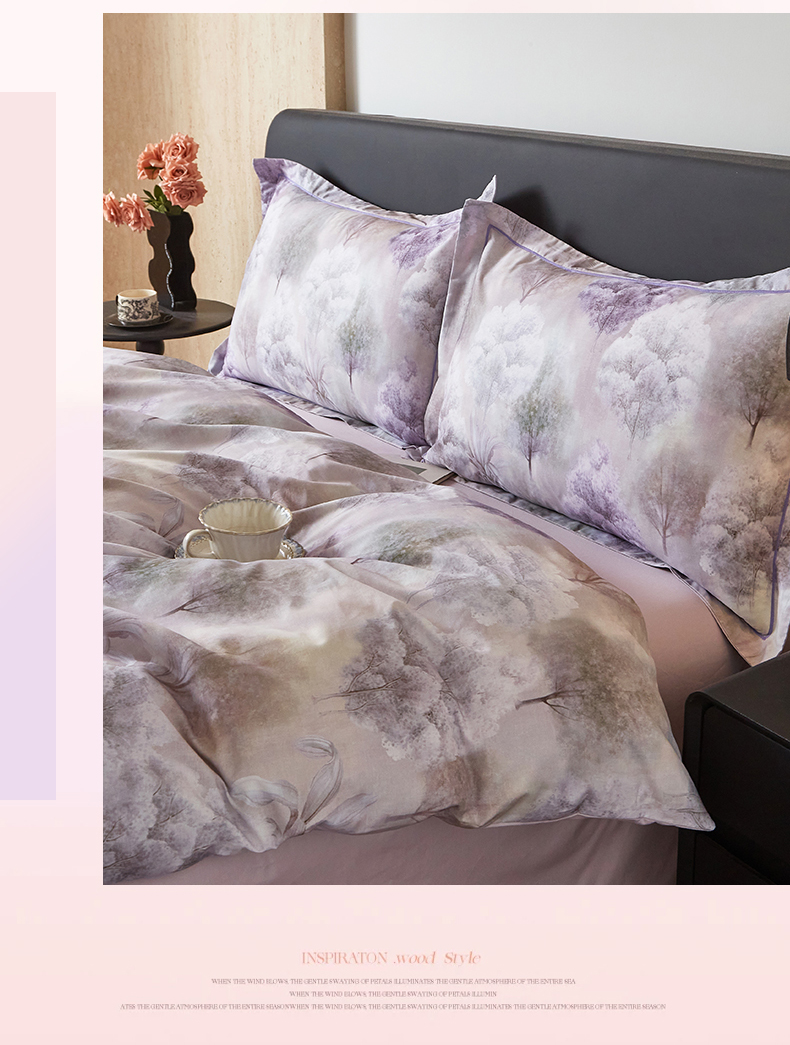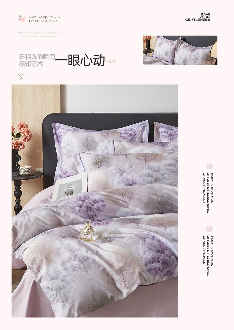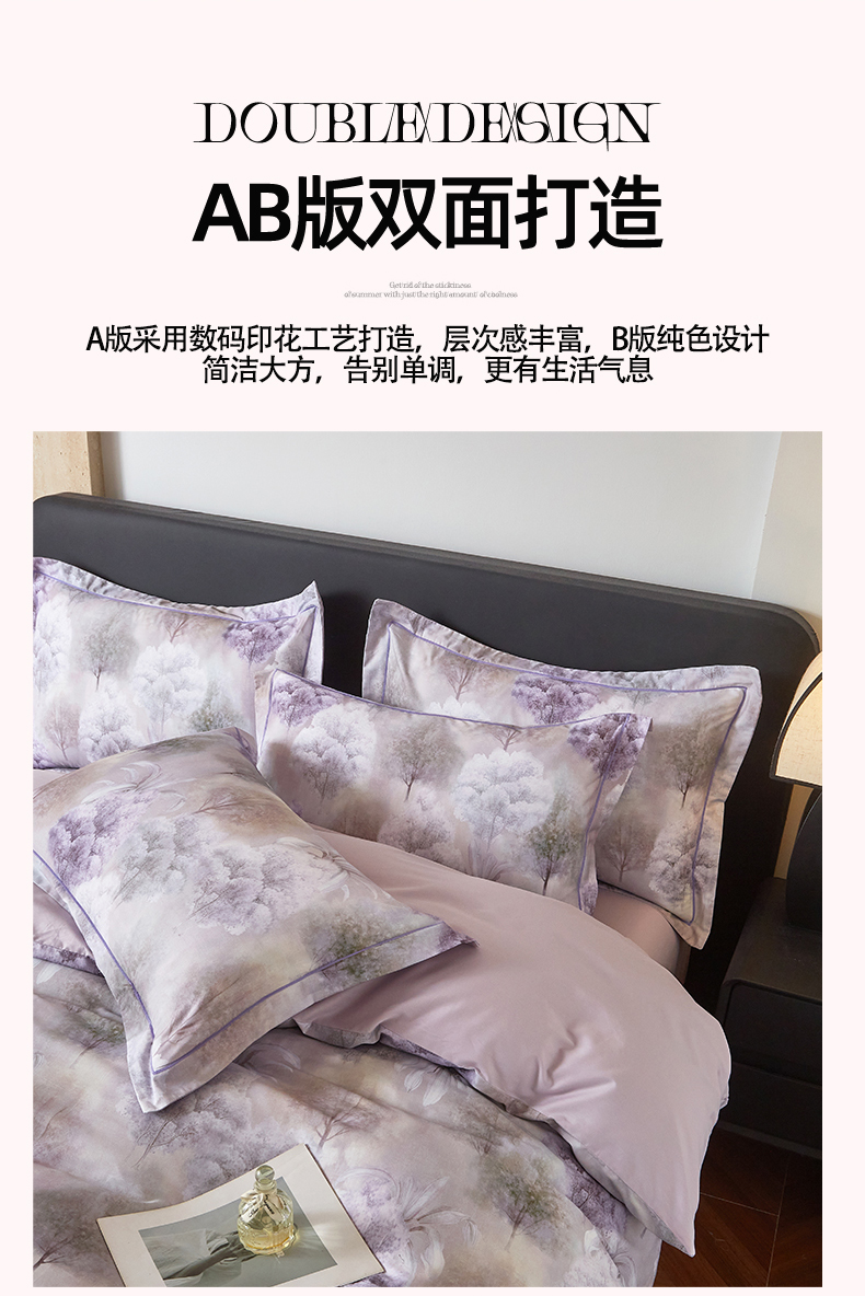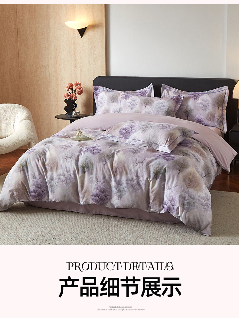 曼秀琳 2026新款铂金棉数码印花四件套(全棉133*76) 可提供买家秀图片 沐雨花-紫