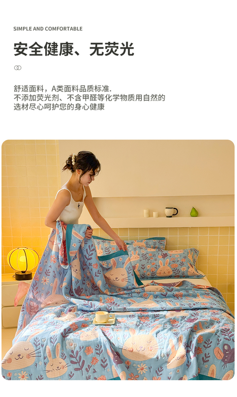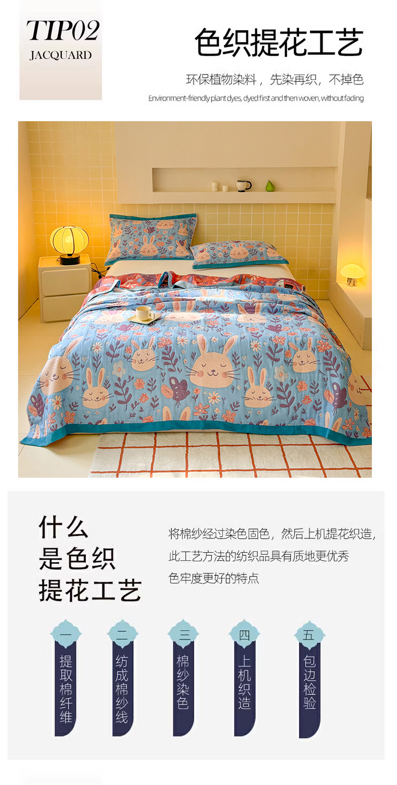 商品名称:朴尔家纺-毛巾被 2026新款彩棉云柔三层纱布毛巾被三件套盖毯 组合图仅供展示