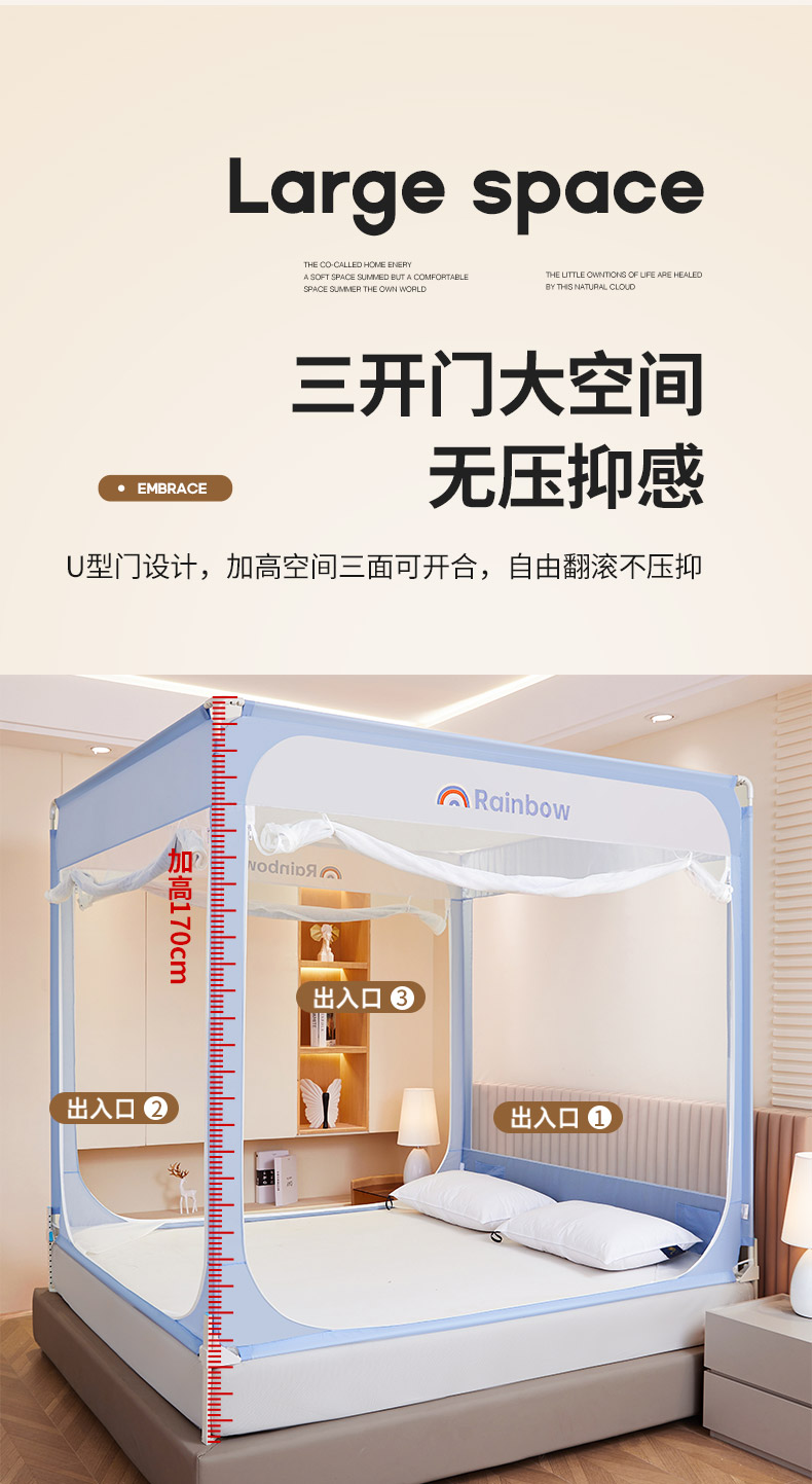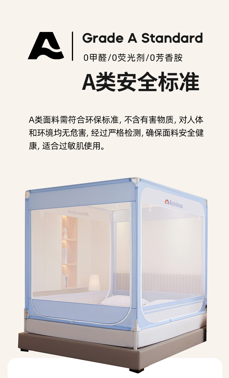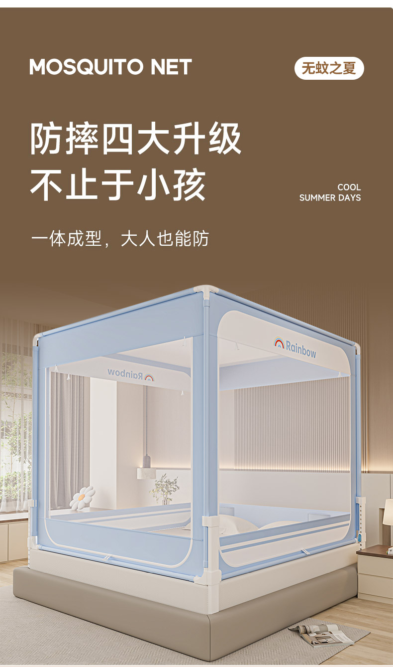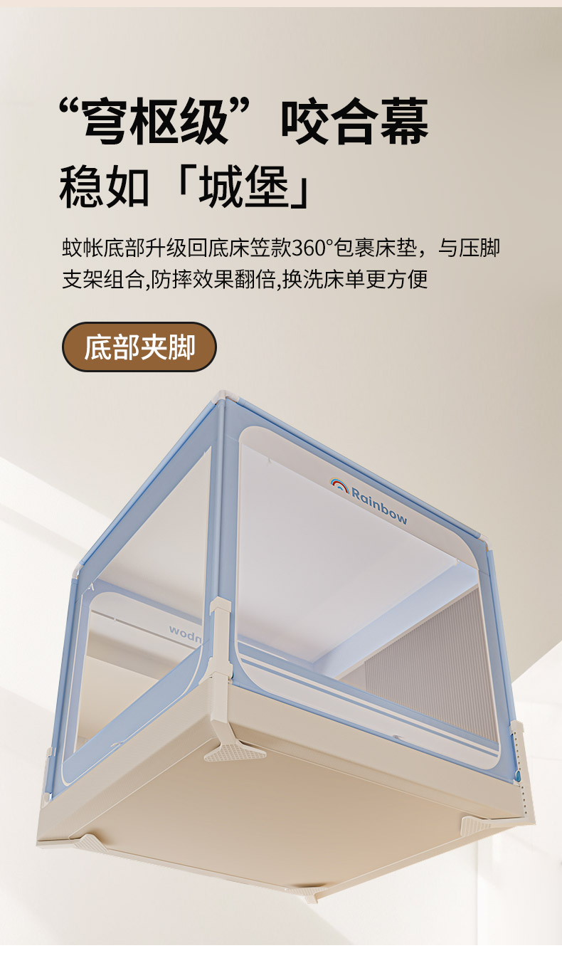 当前位置: 91家纺网 > 商品网购 > 床上用品 > 蚊帐 > 坐床式蚊帐 > 海虹蚊帐 2026新款2601外穿杆三开U型门一体防尘顶加密纱回底床笠款防摔蚊帐 彩虹蓝